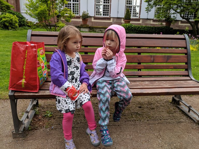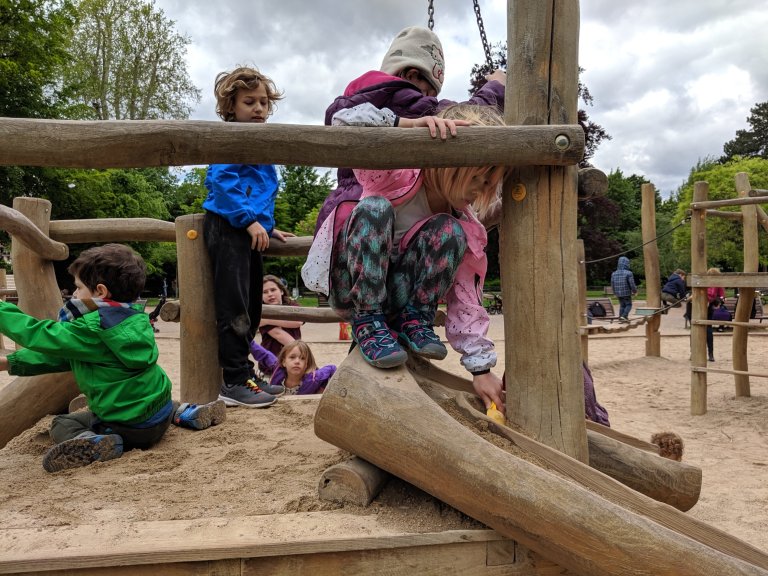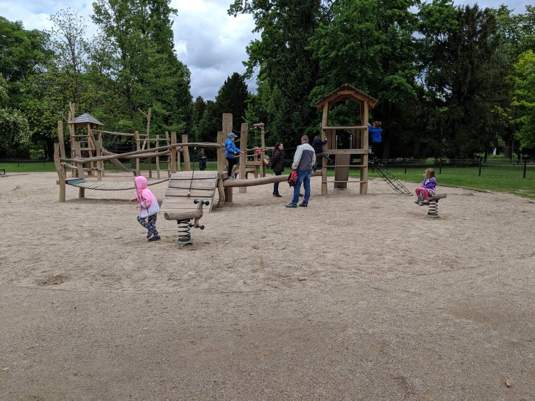 Lots and lots of storks at the Orangery. Probably over 100. They were all busy nest building. Then we found this playground which Nova said she “wished were a little safer”, ha ha! Nova also said she met a French girl but she didn’t know what she was saying so she didn’t say anything back to her.