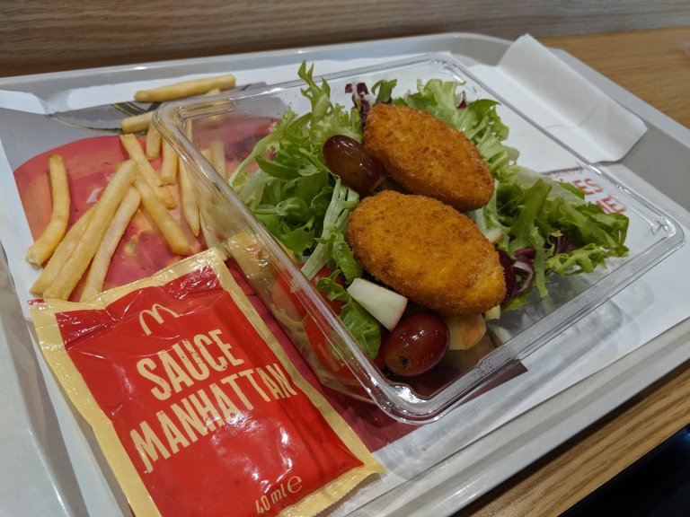 Then we went to McDonald’s to try and get some protein in Esme since her diet is somewhat lacking here. I went next door to a bakery for a tomato mozzarella sandwich instead.