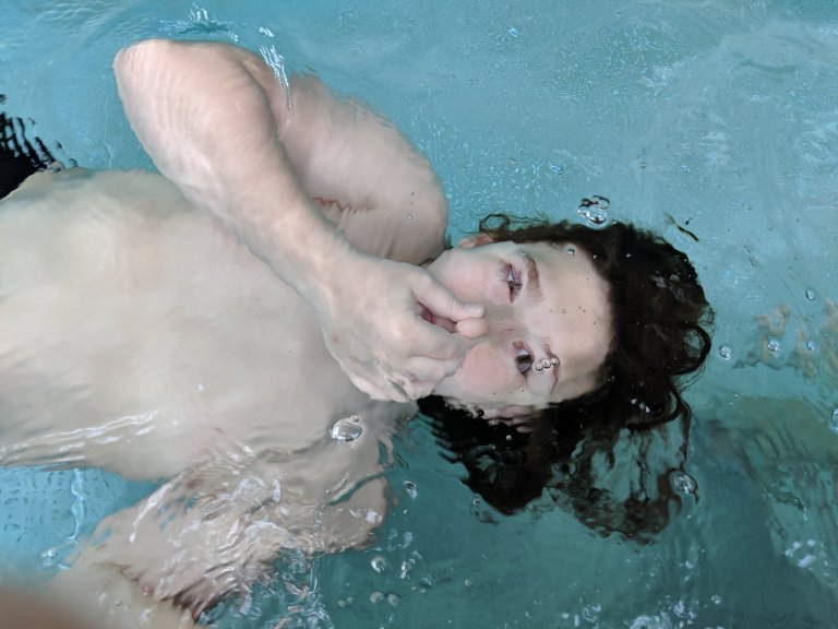 My mom’s salad. They have limited salad choices at McDonald’s here. This one had fried goat cheese patties on top and “Manhattan sauce”. Then we went back to Kibitzenau pool. Before we left, I bought European style swimsuits for the boys since I knew they were particular about that at pools here. No board shorts or even normal loose short style swim trunks. Cal’s didn’t fit right so we picked some new ones up for him in Kehl the other day. I heard they didn’t worry too much about what women wear but they stopped my mom before she got in the pool and told her that her swimsuit with shorts would not do. They do sell swimsuits in a vending machine in the lobby but they were pretty expensive for something she would probably never wear again. She sat out but was only allowed in the pool area if she kept her “shorts” covered with her towel.