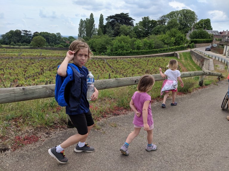 After fresh croissants for breakfast we went to a cheese factory, Fromagerie Gaugry that makes soft cheese. After the initial period of getting used to the smell, I was a really impressed by the set up with big windows to watch the production process and a self-led video tour. They weren’t doing much producing since it is Saturday but the kids liked watching to workers move cheese from one curing room to another and clean equipment.