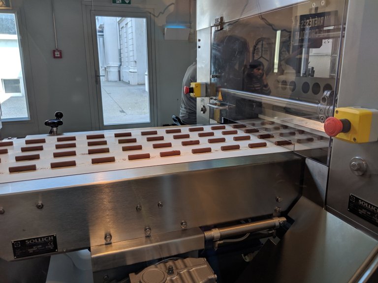 Here chocolate was being made live at slower pace than usual so we can watch. At the end an operator was taking the finished product and handing it out.