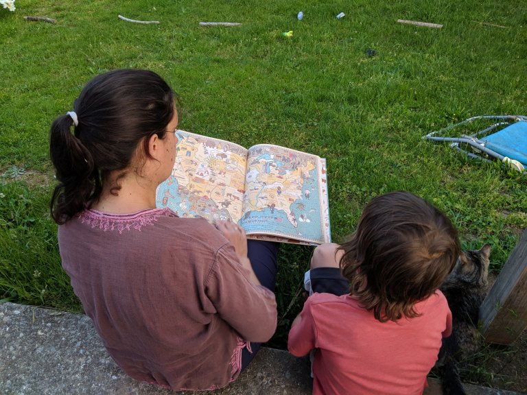 We got back to Hélène and Thierry’s house and spent the afternoon mostly outside. Cal and their 9 year old shared magic tricks.