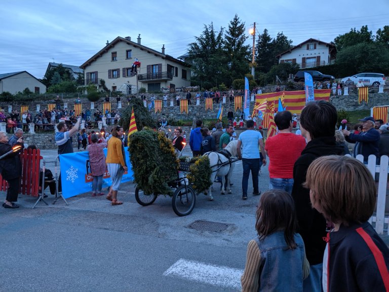 Once the fire was started, the DJ started up and played some great dance music. They served juice and the traditional cake served on Saint-Jean. We joined in a bridge/train dance around the fire where you join hands to make a bridge and people pass underneath. Eventually, you’re the last ones on the train and you pass underneath. It was Asa’s idea to join it and it was a great way to end the night. We had a little trouble finding a route home because some of the roads in town were closed to accommodate the festival but we made it home in time to watch some fireworks in Spain from our hosts’ mountain top. The whole day was a lot of fun and I’m glad we got to share it with Alizée and Lionel’s family.