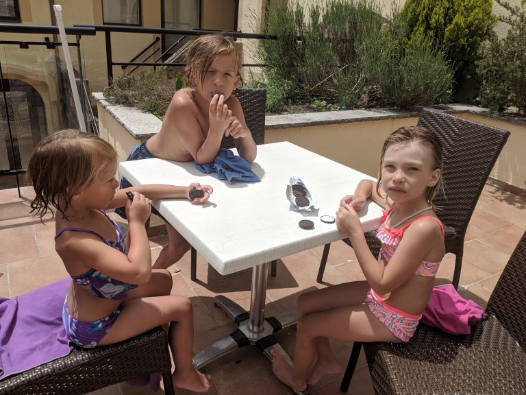 I don’t have a lot of pictures from today. This morning we slept in, played and rested. After lunch the kids and I went to one of the local geothermal pools. There are several in the area and we chose this one based on proximity since we didn’t want a long drive through the mountains.