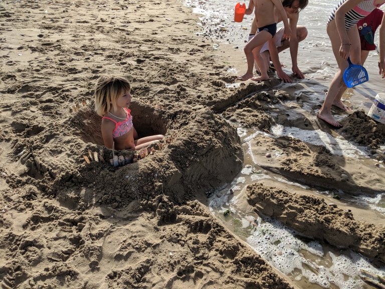 The tide was coming in fast so Esme decided to build a fortress against the waves.
