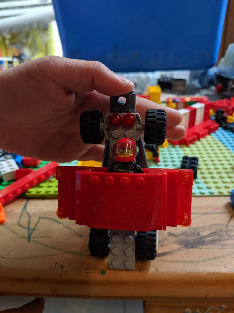 This morning it was a little hard to get up because everyone except Nova stayed up past 1:00am. We did get moving eventually. The bakery was closed and we were low on food since we were trying not to take too much with us so we had ice cream for breakfast. Esme and Asa wanted more pictures of their Lego creations before we left. Esme forgot to put her robot in last night’s picture. Asa built a spaceship.