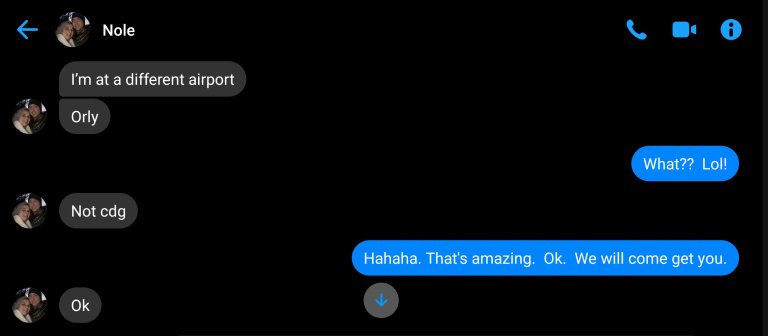 I was excited because it was going to be such an easy pick-up with us being ready and waiting with the rental car when he got there! We went in and got our new vehicle then moved our suitcases over. Around this time Nole called asking for help finding us. I was a little frustrated, dealing with moving kids and bags and told him to show someone the pictures I sent and ask how to find us. I went back to loading the car and then waited…and waited…and no Nole. Finally a text!