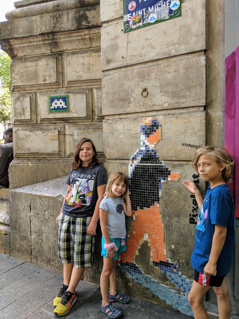 We left the Louvre and took the Metro back to our apartment, stopping for a treat on the way. Esme spotted her name on the subway tiles then Asa found his too.