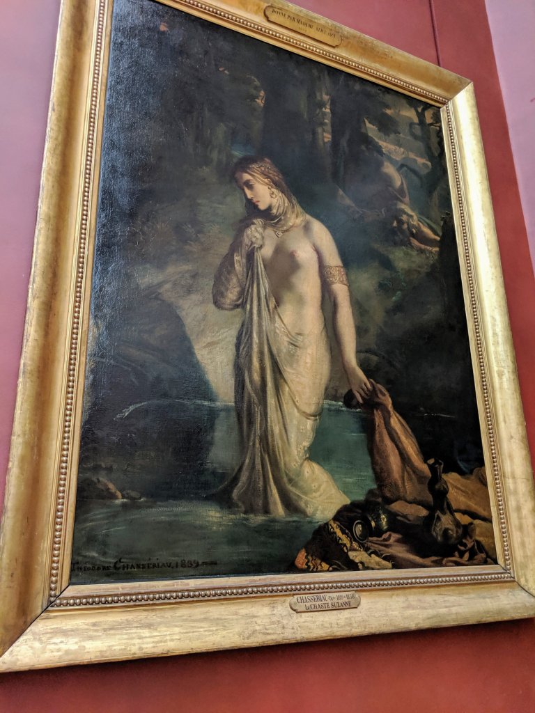Finally it was time for our visit and we walked back over to the Louvre. We brought our stroller since there was lots of walking today and when we got to the entrance to the Louvre, a guard saw the stroller, said “Oh a baby? You go to the front!” and took us up to the door to bypass the long line. Now, Nova isn’t quite a baby but we weren’t complaining. We got inside and saw the French sculptures and French paintings. Below are some of our favorites: