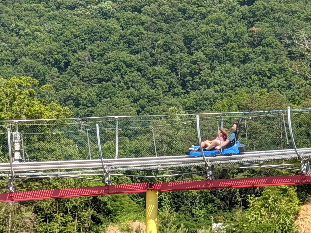 There was also an alpine rollercoaster. Nova didn’t want to go so first Esme and I went. You control your speed with hand brakes. It was really fun! Then Cal and Asa went twice.