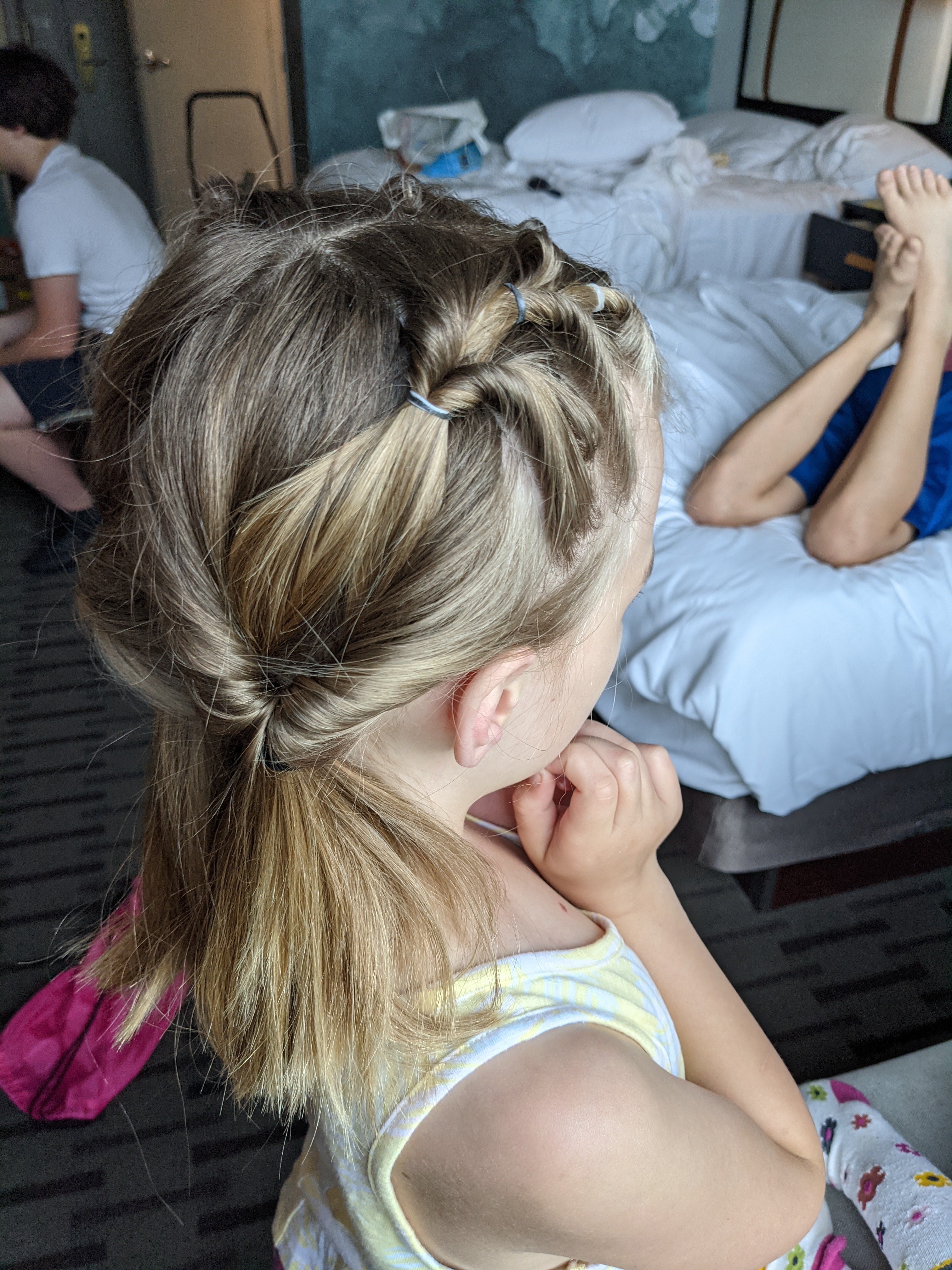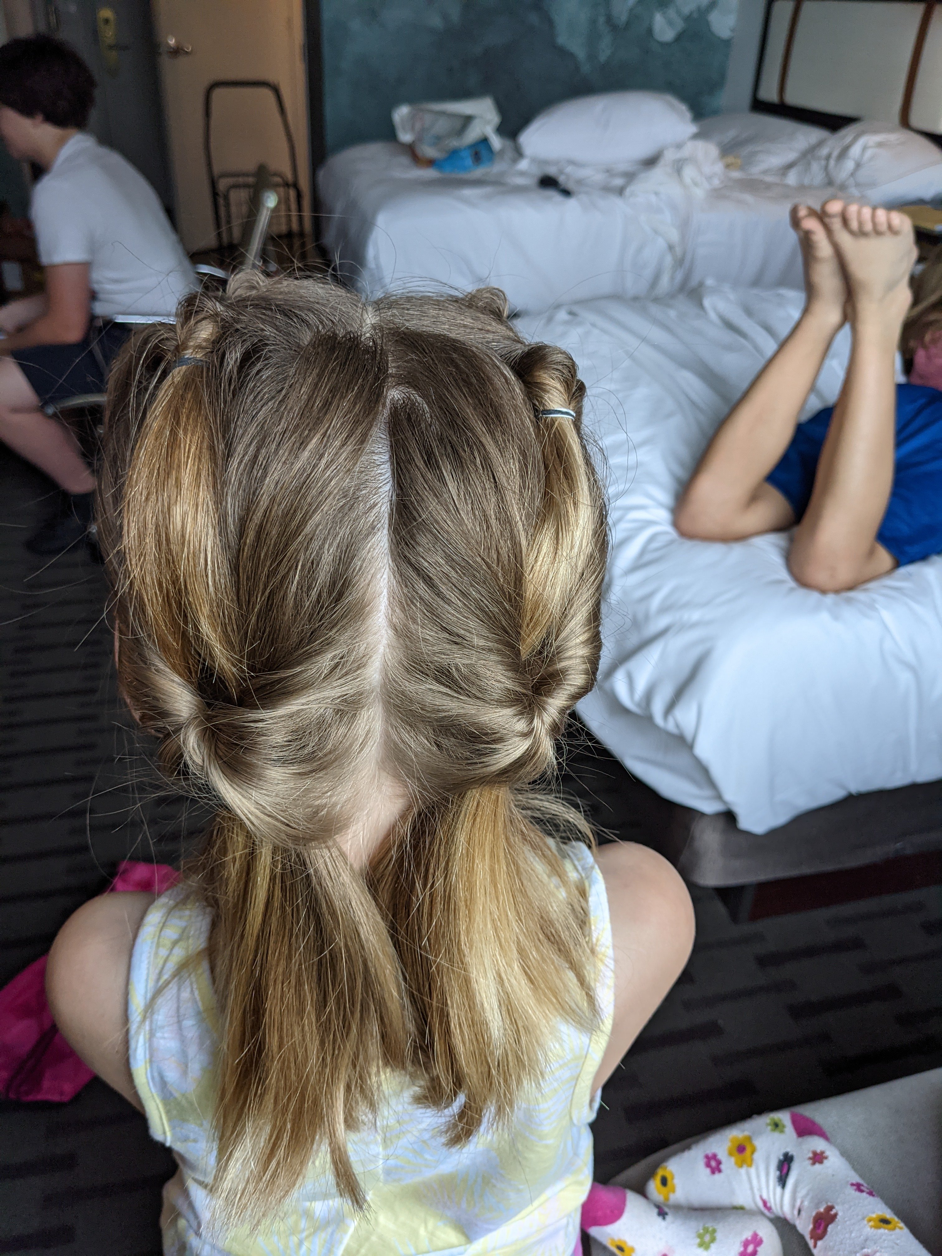 After staying up late last night, we needed a day to really sleep in. This hotel doesn’t have complimentary breakfast which meant we didn’t need to get up in time for that either. Nova and I were up before 9am but the others slept until about 10 when I finally insisted they get up. We did get some free items from the coffee shop downstairs for being Honors members so we grabbed a few things there and supplemented that with things we brought from home (cereal and boxed shelf-stable milk that I love to buy for trips from the dollar store).