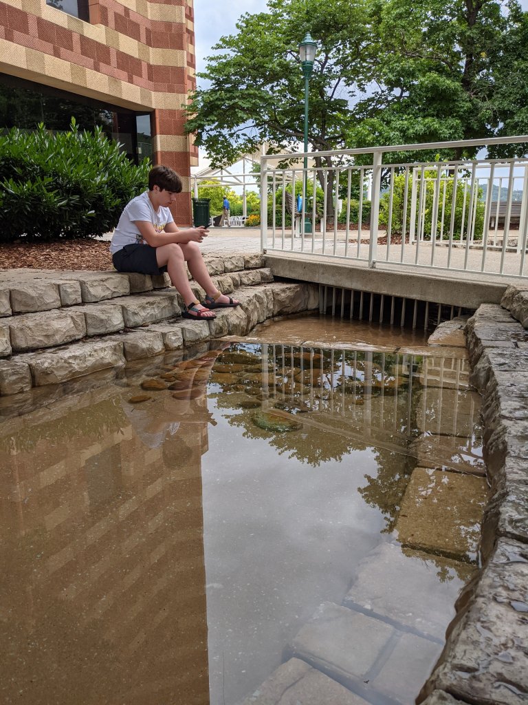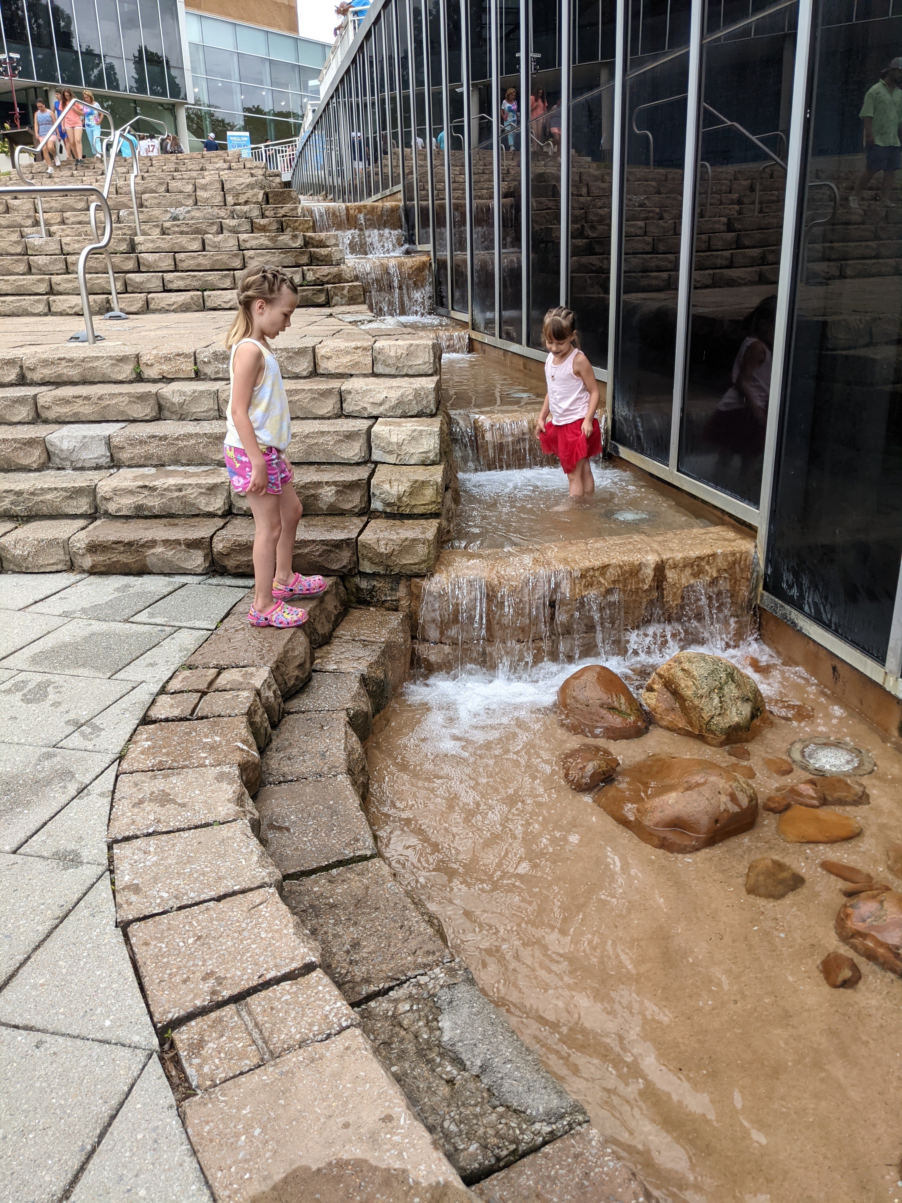 Before we got there, we spotted an aquarium and Cal loves aquariums so I told him we could go. The aquarium was actually sold out for today which was a good thing since it was pretty expensive. However there was a pretty cool water feature nearby. I’ve never seen anything like it. It was a flowing artificial river.