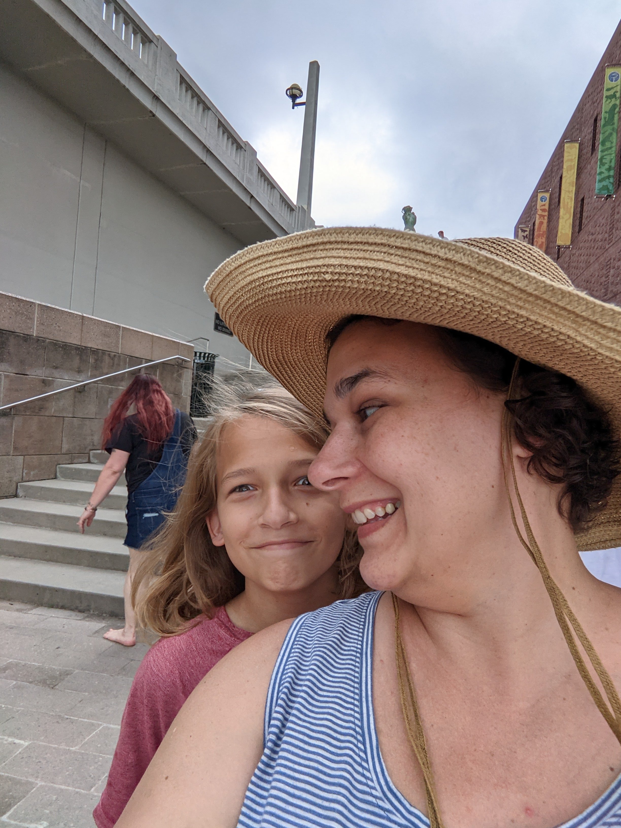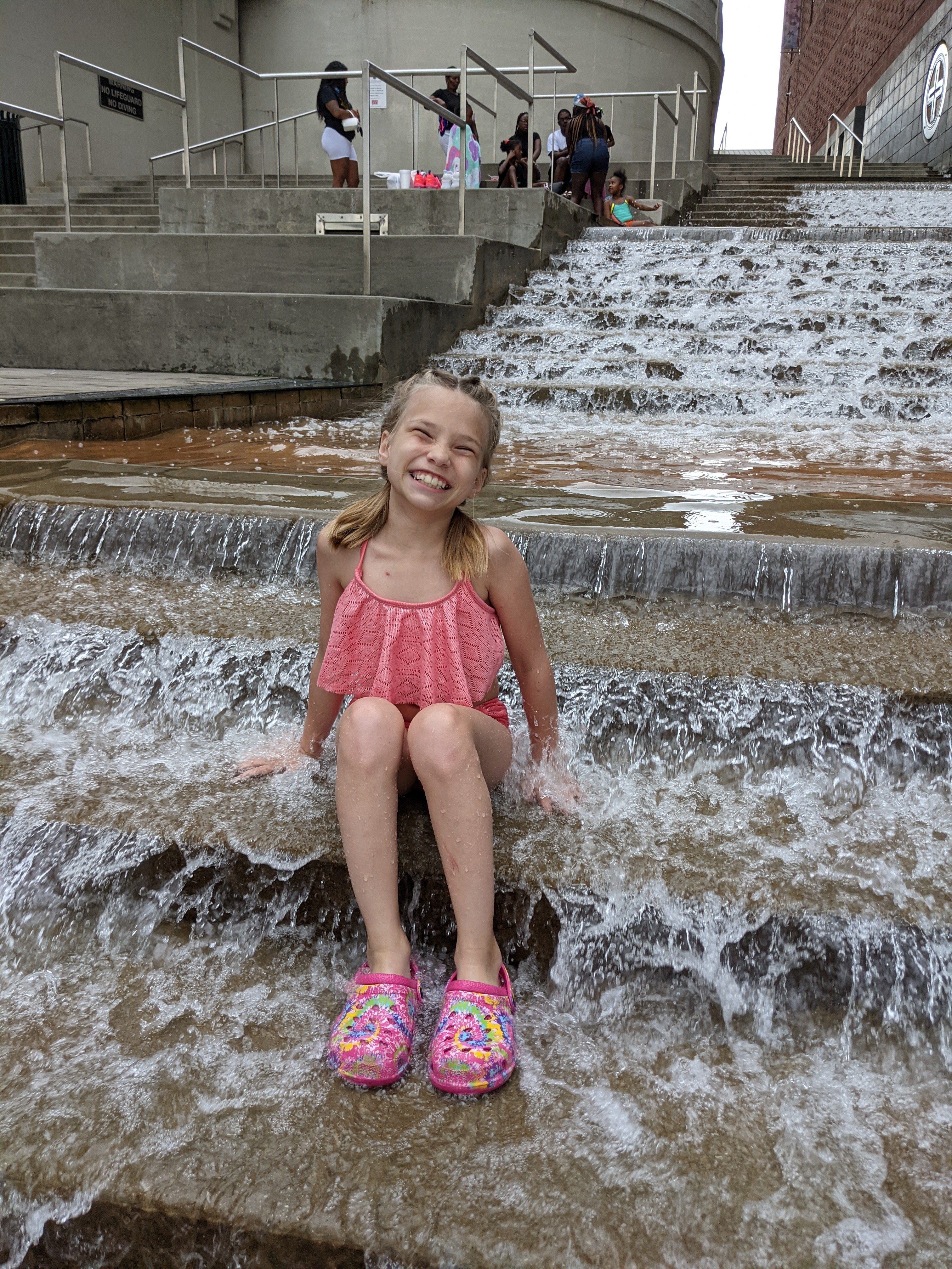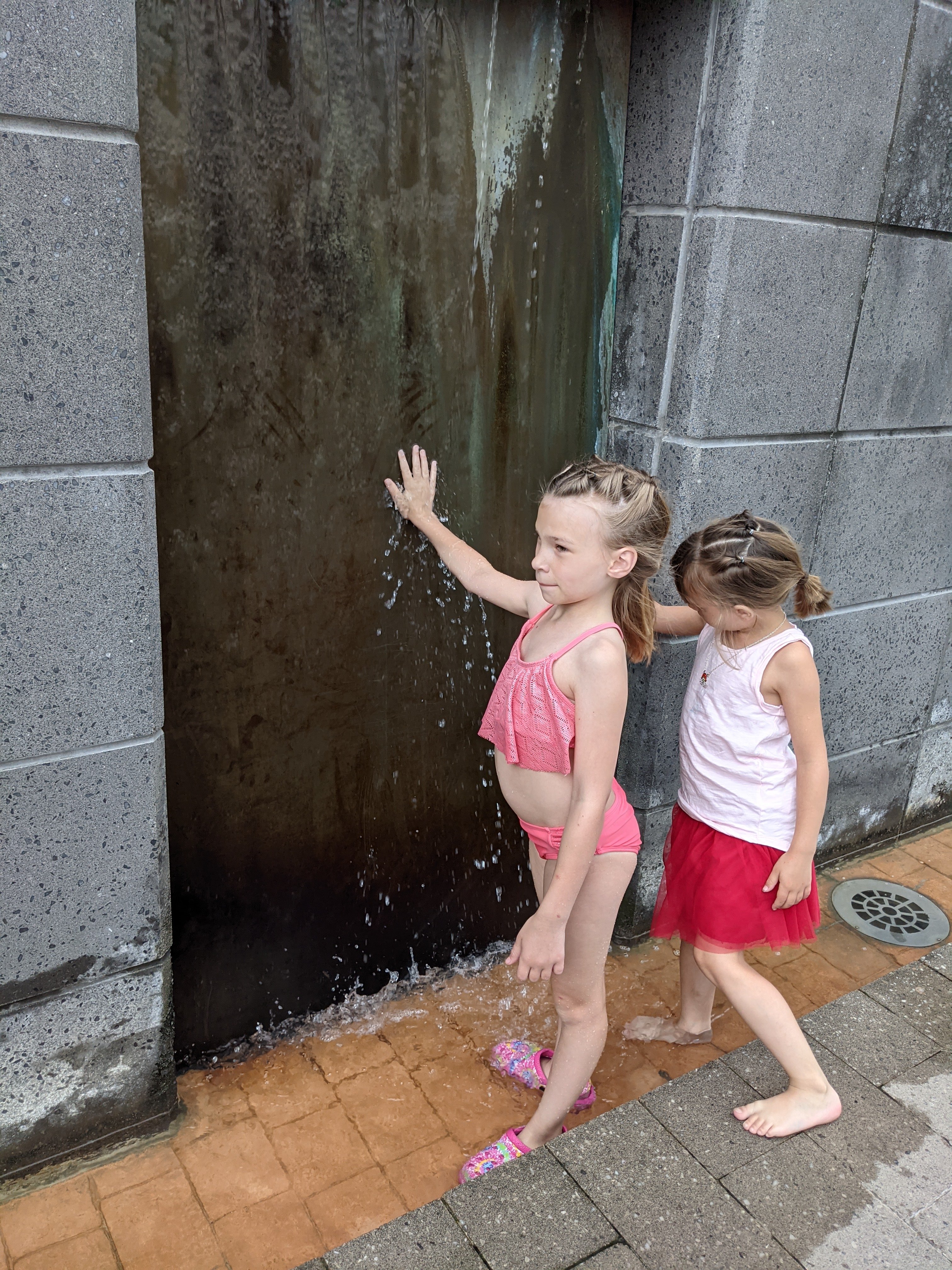 At this point we were pretty tired and starting to get hungry. The boys’ phones has died earlier and they wanted to recharge them so they could play more Pokemon Go. We considered a bus ride or Uber ride back to the hotel but the boys clothes were wet since they didn’t bring swimsuits. Plus we wanted to stop and buy some soda and juice boxes so we ended up walking back and stopping at grocery store. We ate our snacks and are watching a movie now. We might go back out depending on the weather. It’s Saturday night and there are a few places where we can listen to live music for free.