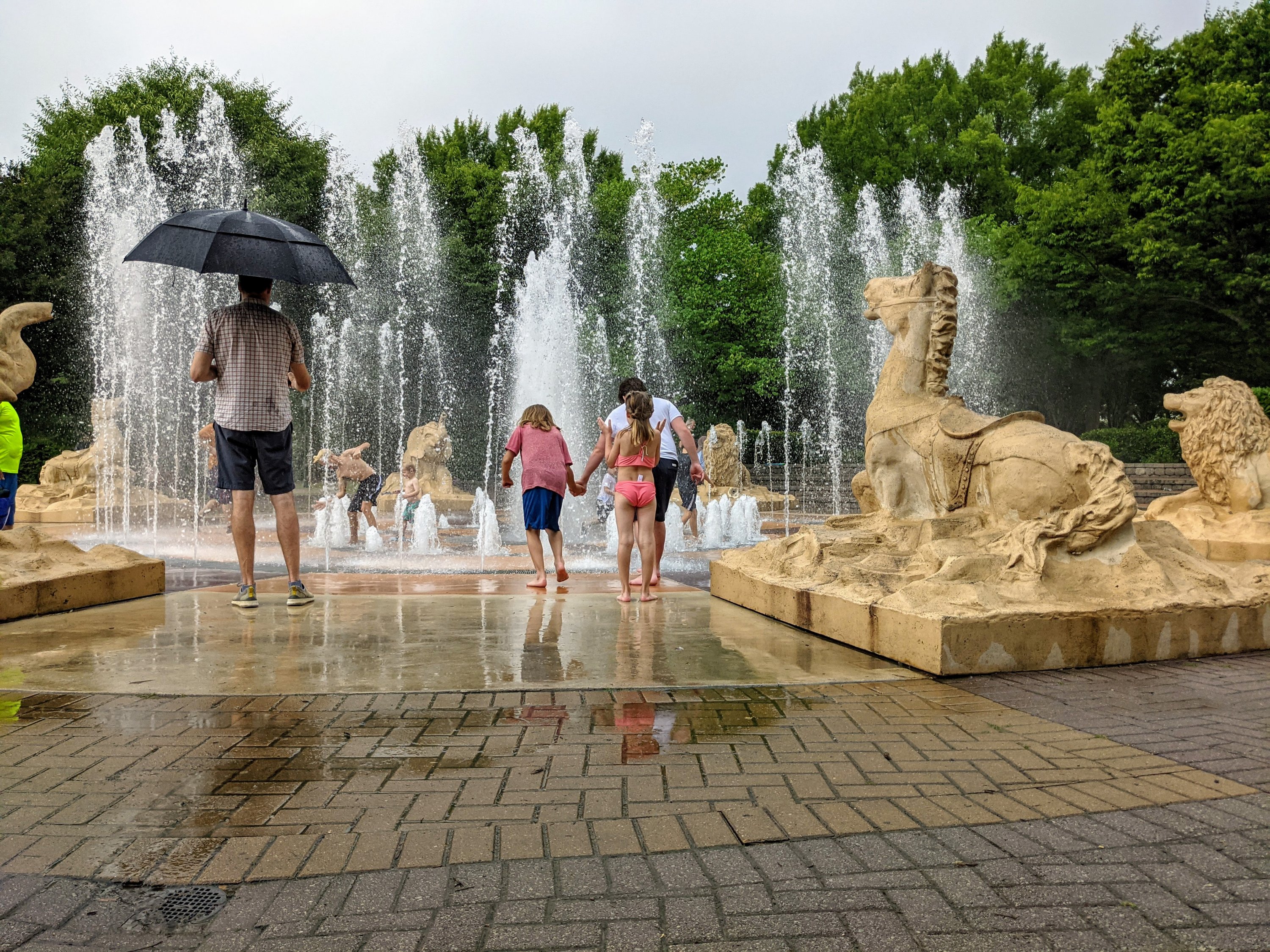 When we finished our ride it started to rain. The kids had planned to play in the water feature at this park and it was only light rain so they played in it anyway and I sat under a tree.