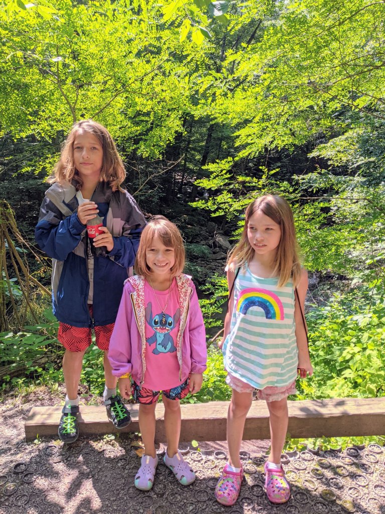 The kids are old pros at car rides and after an hour (I know it says 43 minutes but Google is not good at estimating driving on back roads and we drive slow on the mountains), we arrived at the head of the hiking trail. This trail is about 5 miles long but we planned to go about half way and back to do a total of five miles.