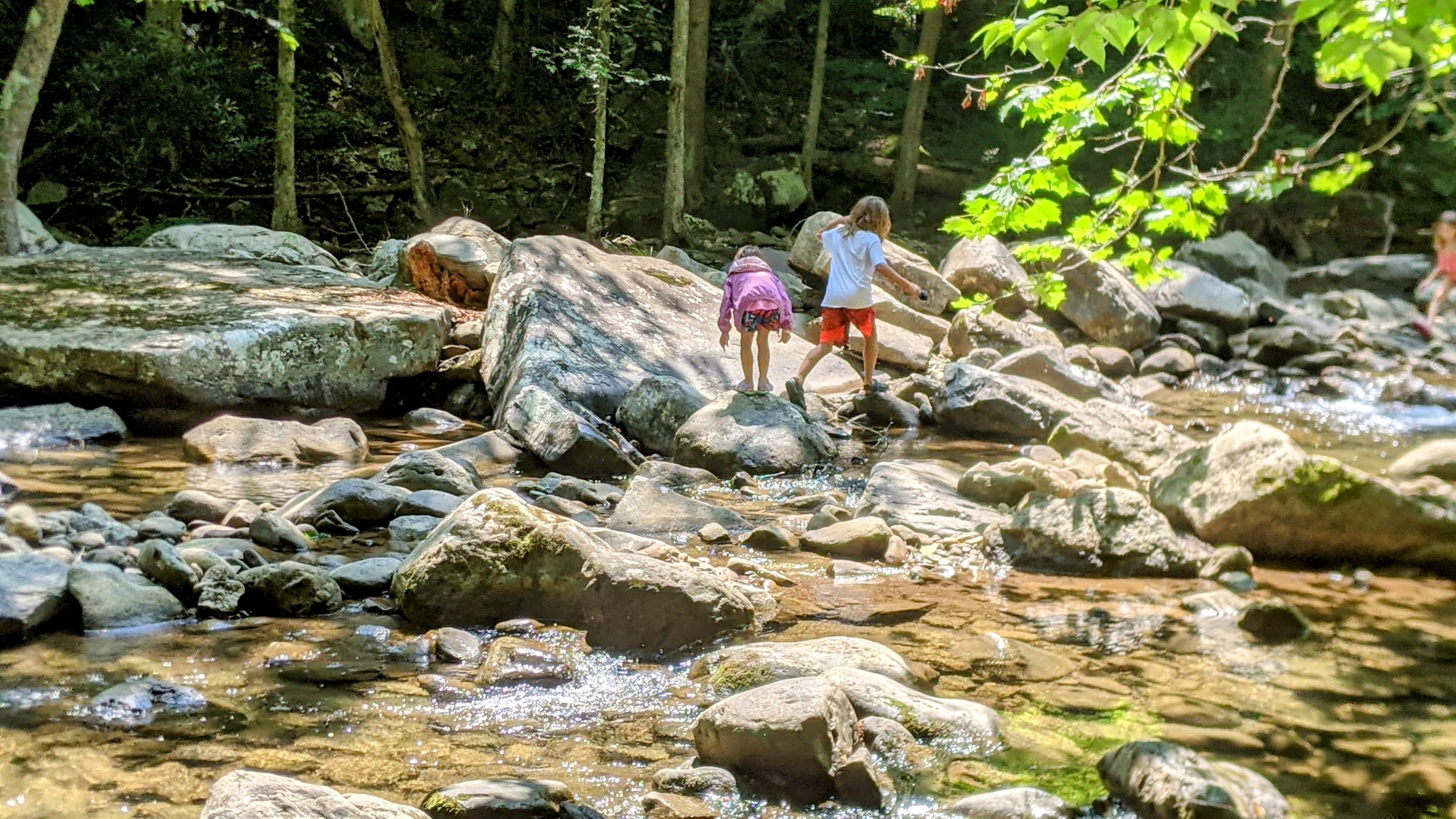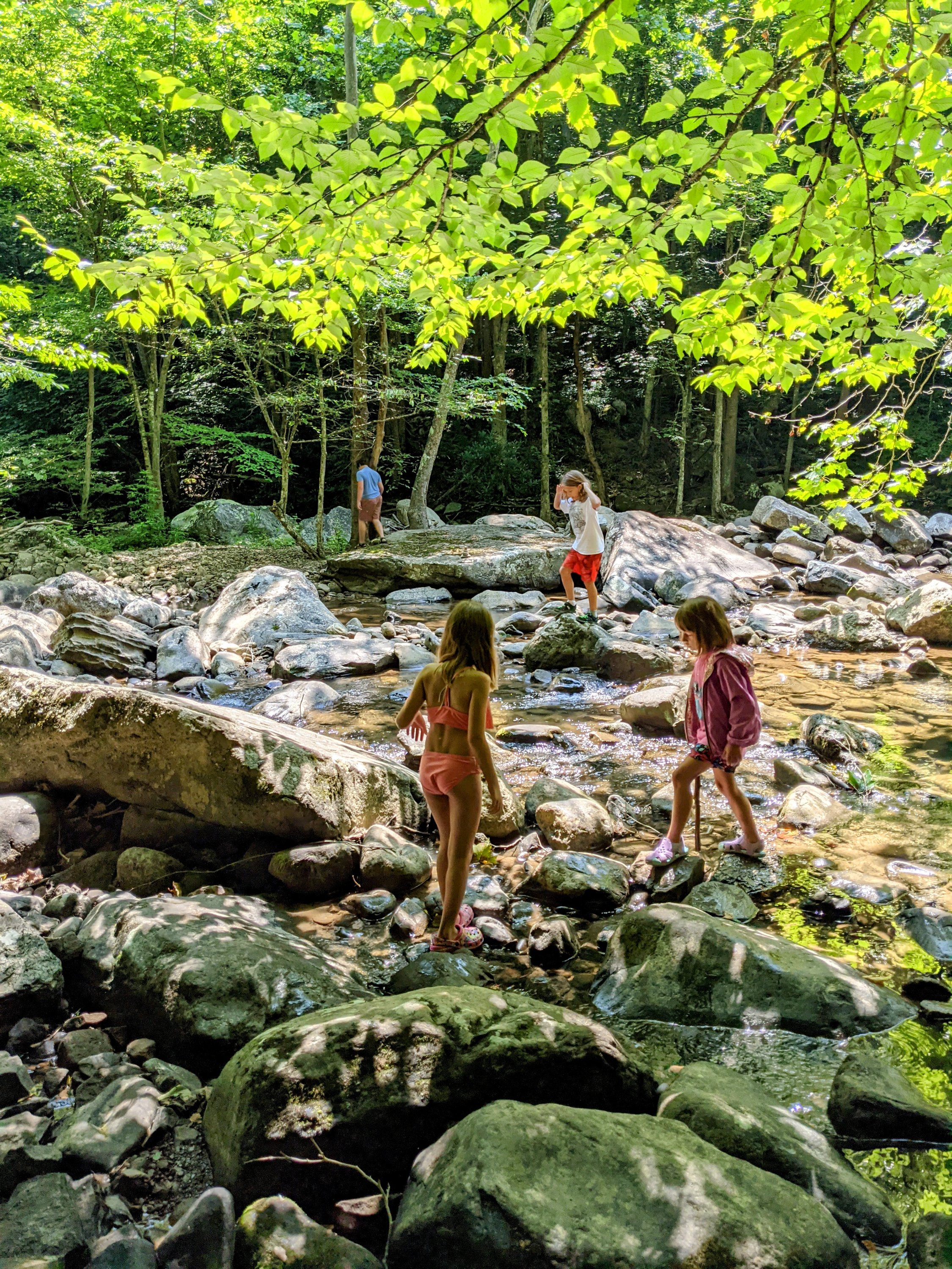 Asa hopped across the creek using rocks right away but the rest of us aren’t as nimble or confident. It took a few tries but eventually all of us got across.
