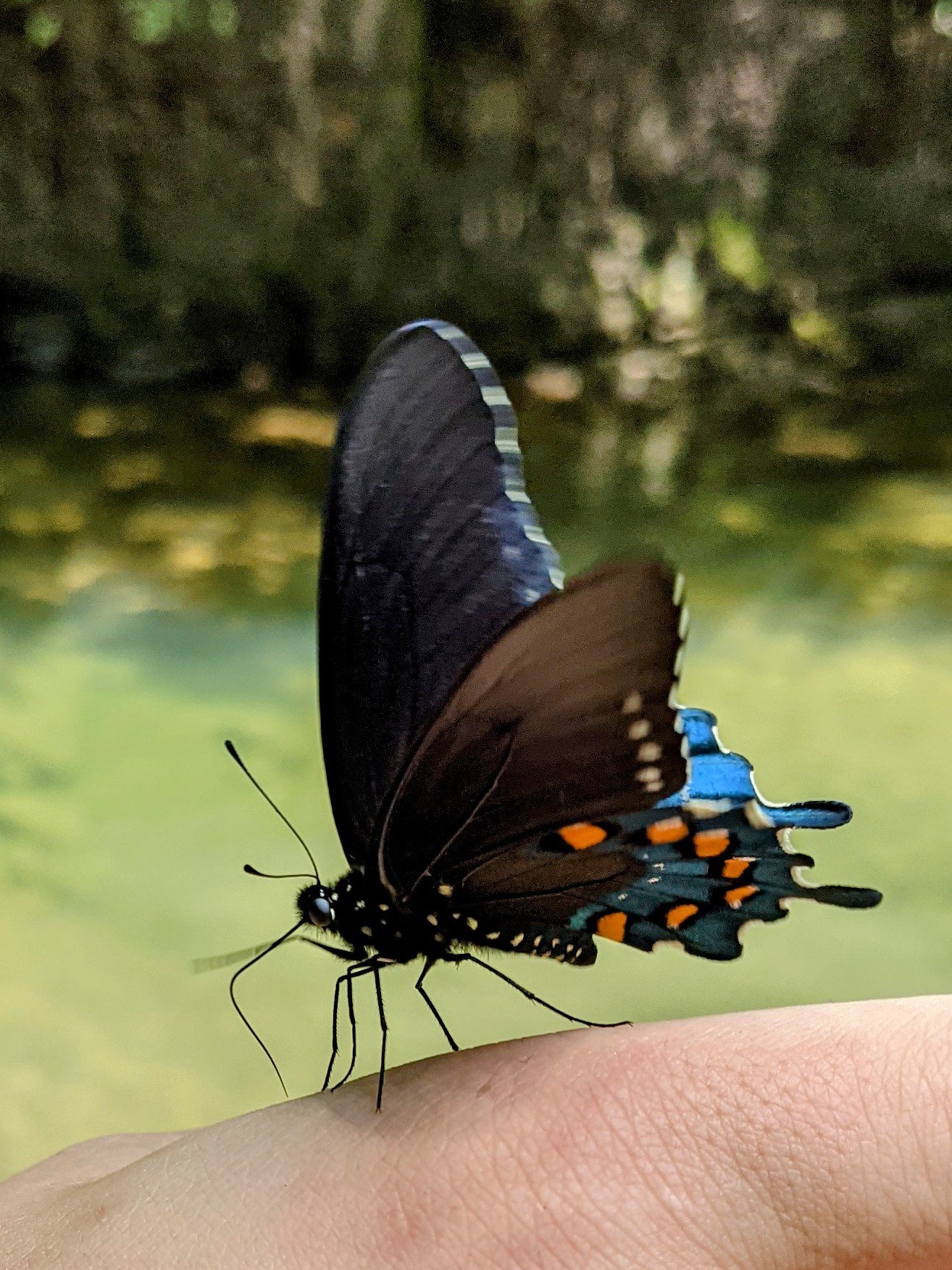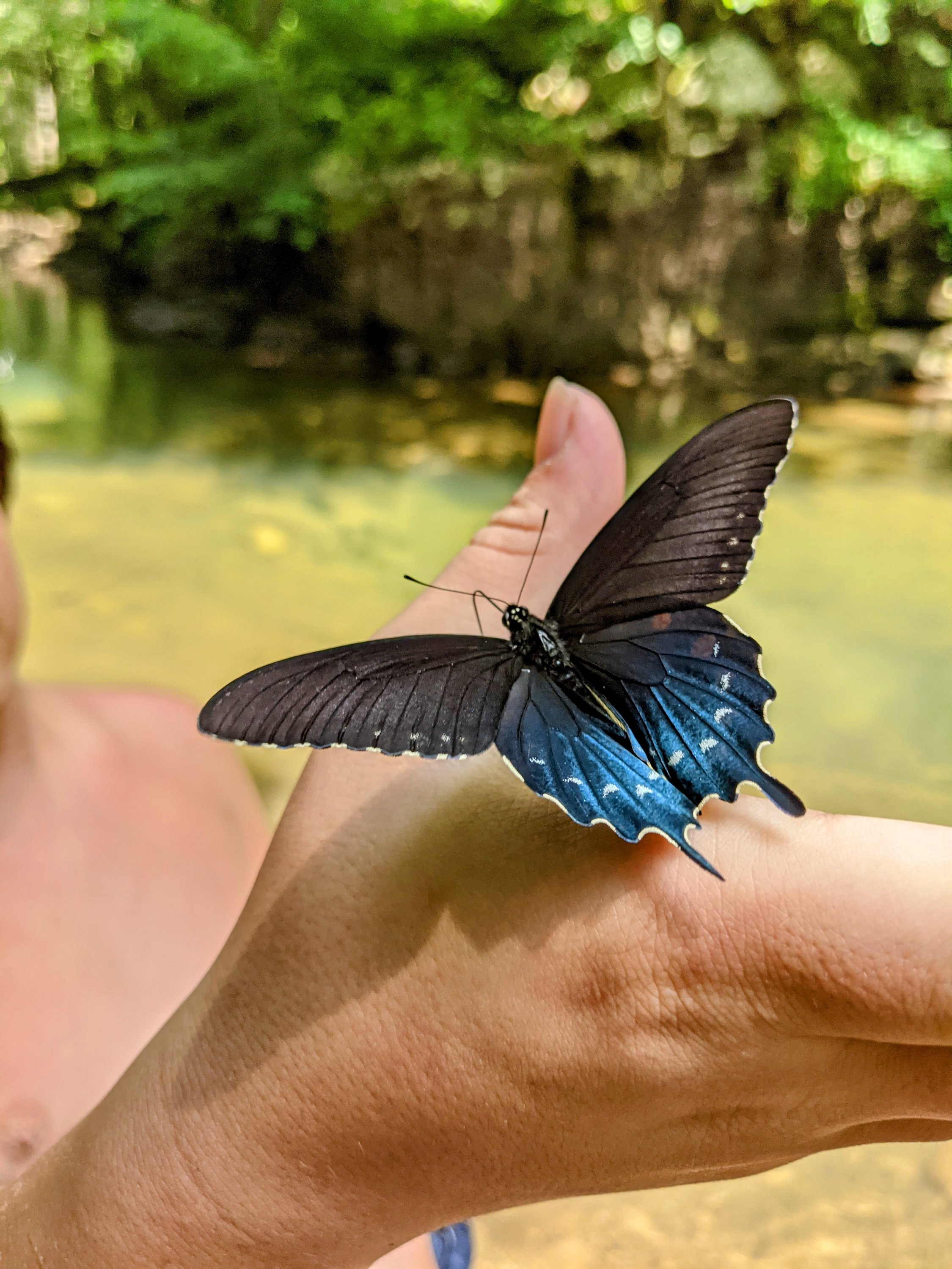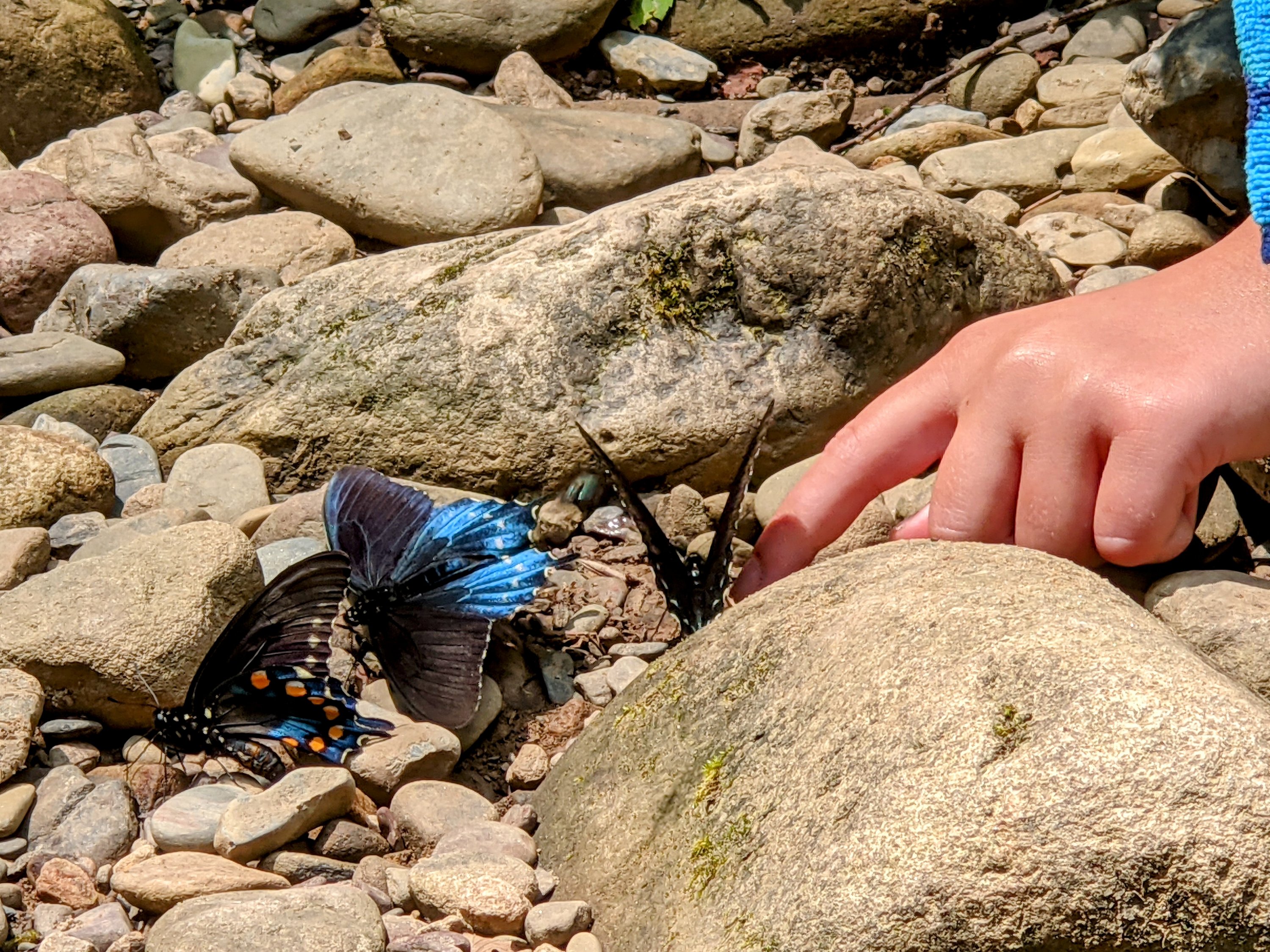 There were trout in the stream and we saw several people fly fishing in the creek. We saw one man catch a bass. There was also a spot where the butterflies were sunning themselves and licking salt off the rocks.