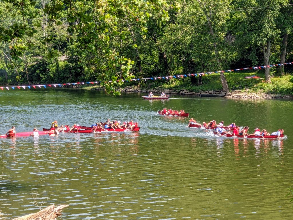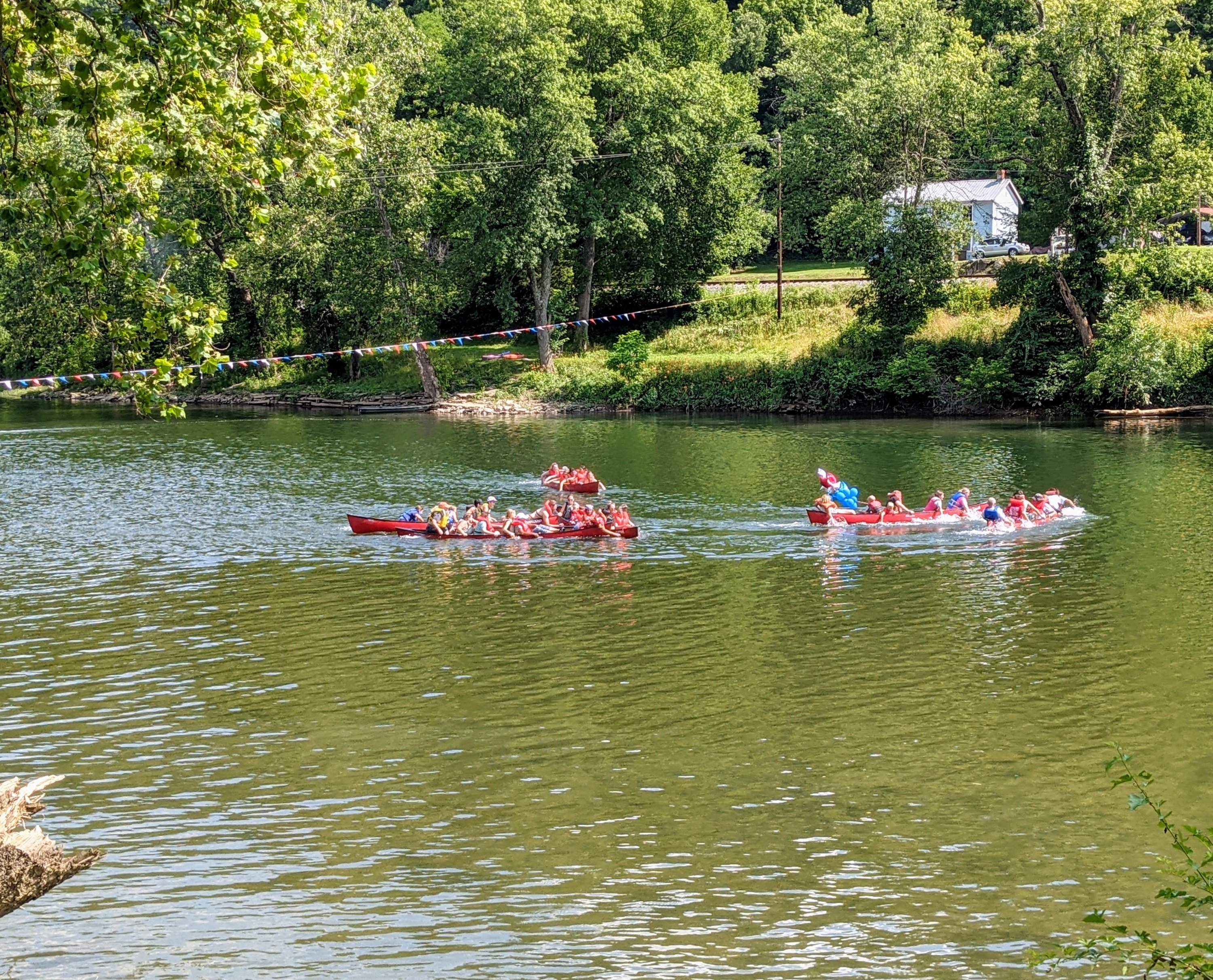 When we left the trail, we went to Alderson for the largest 4th of July celebration in West Virginia. They were having some canoe races and a rubber duck race where they raffle off tickets, dump rubber ducks in the river and the one who crosses the finish line first wins $5000. Unfortunately, they were sold out of duck tickets when we got there. We stayed for a few canoe races. The most exciting was the 6 man because many of the canoes capsized.