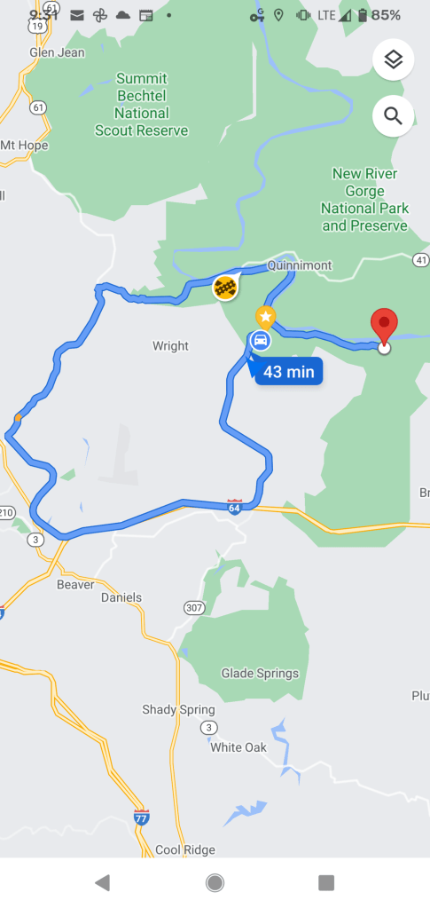 The two places we wanted to visit were near each other (or so it seemed–more on that later) so we headed to the closer one first. It was the main overlook of the New River Gorge.