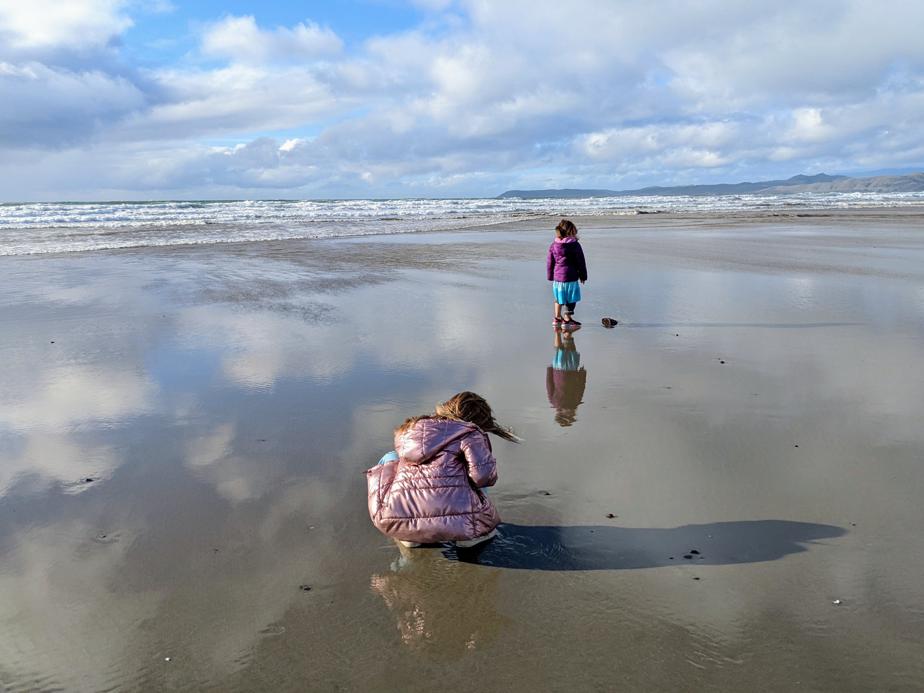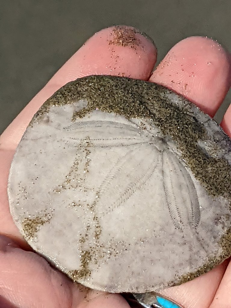 We crossed the road to the beach that was on the ocean to beachcomb. We found lots of interesting rocks and a bunch of sand dollars. Online it said you could also find moonstone on the beach. Some of the white ones below were a bit heavy and opalescent and might be moonstone.