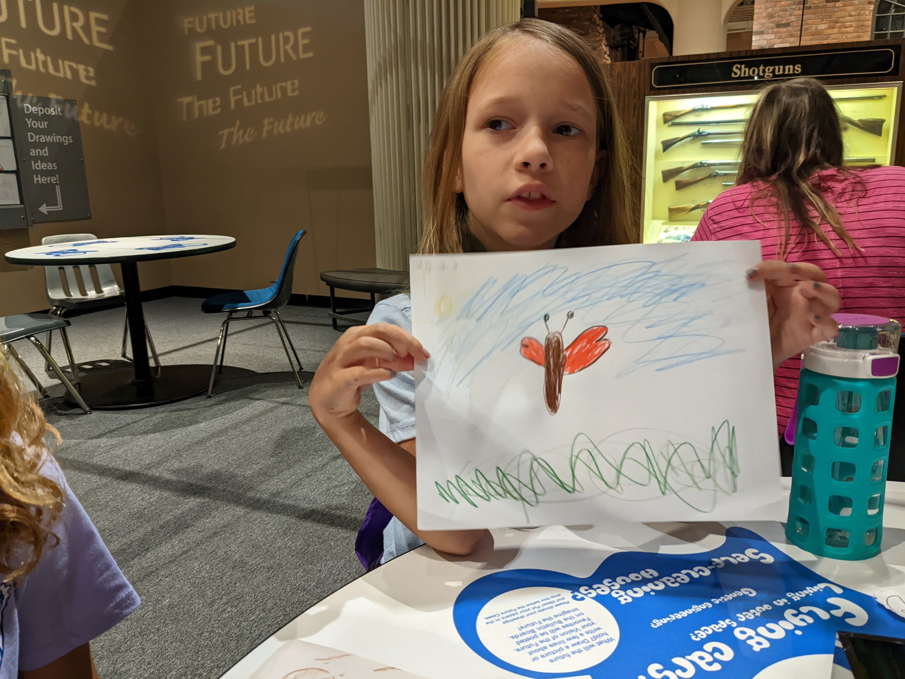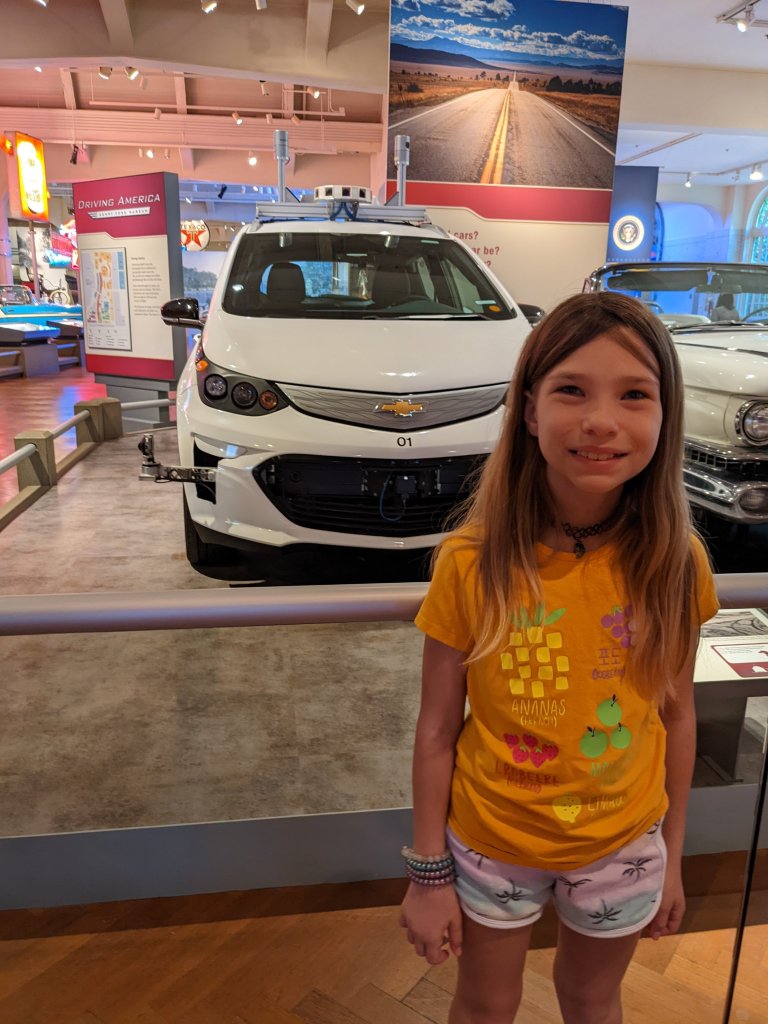 Today we went to the Museum of American Innovation. My mom and Ray met us over there. Esme has been working on her travel journal and was leaving space for pictures. Today I encouraged her to take some pictures of her own. I showed her a couple of tricks about framing a photo well like deciding whether to use portrait or landscape and the rule of thirds. I think she did a great job. The next three photos are hers.