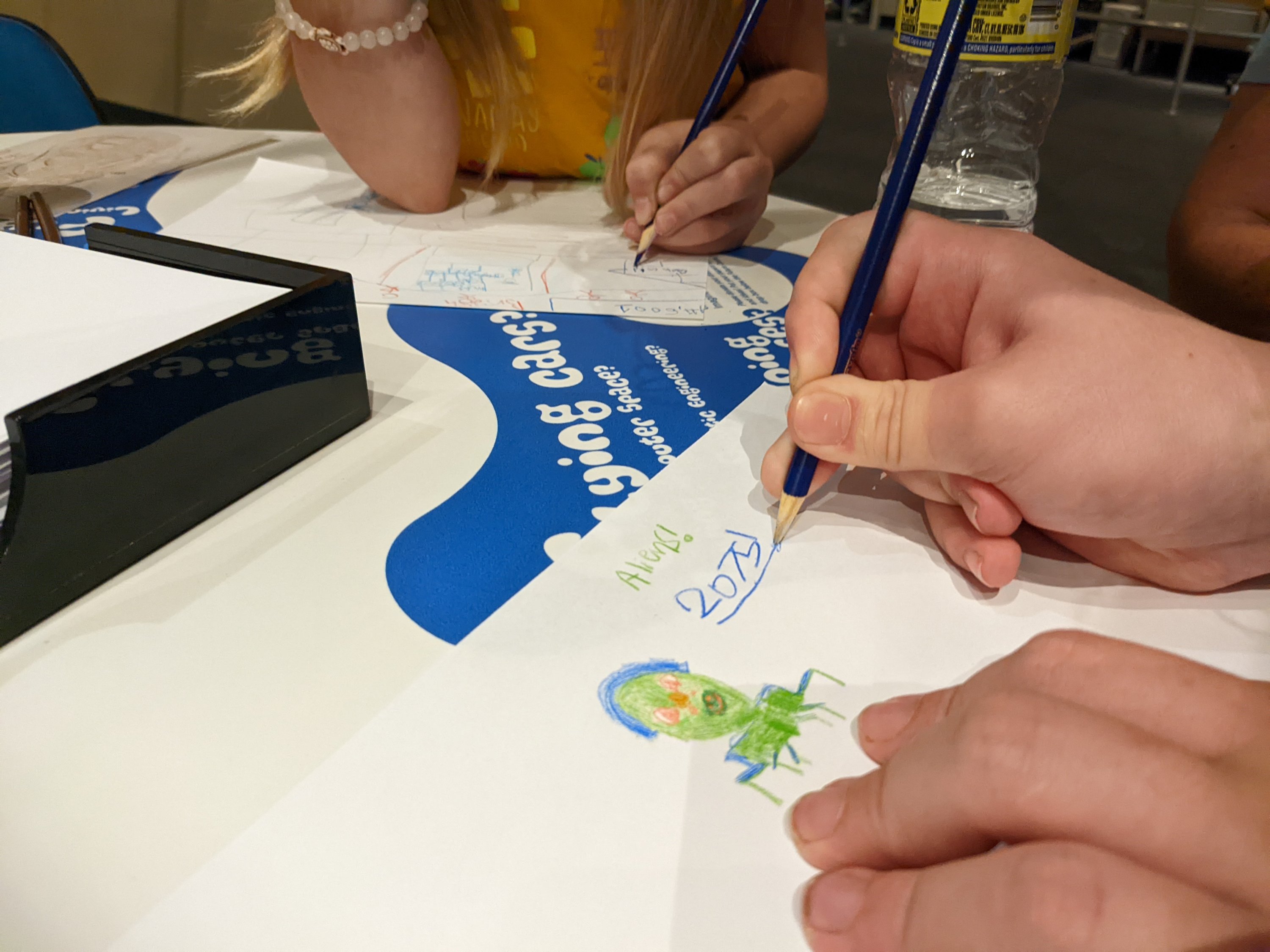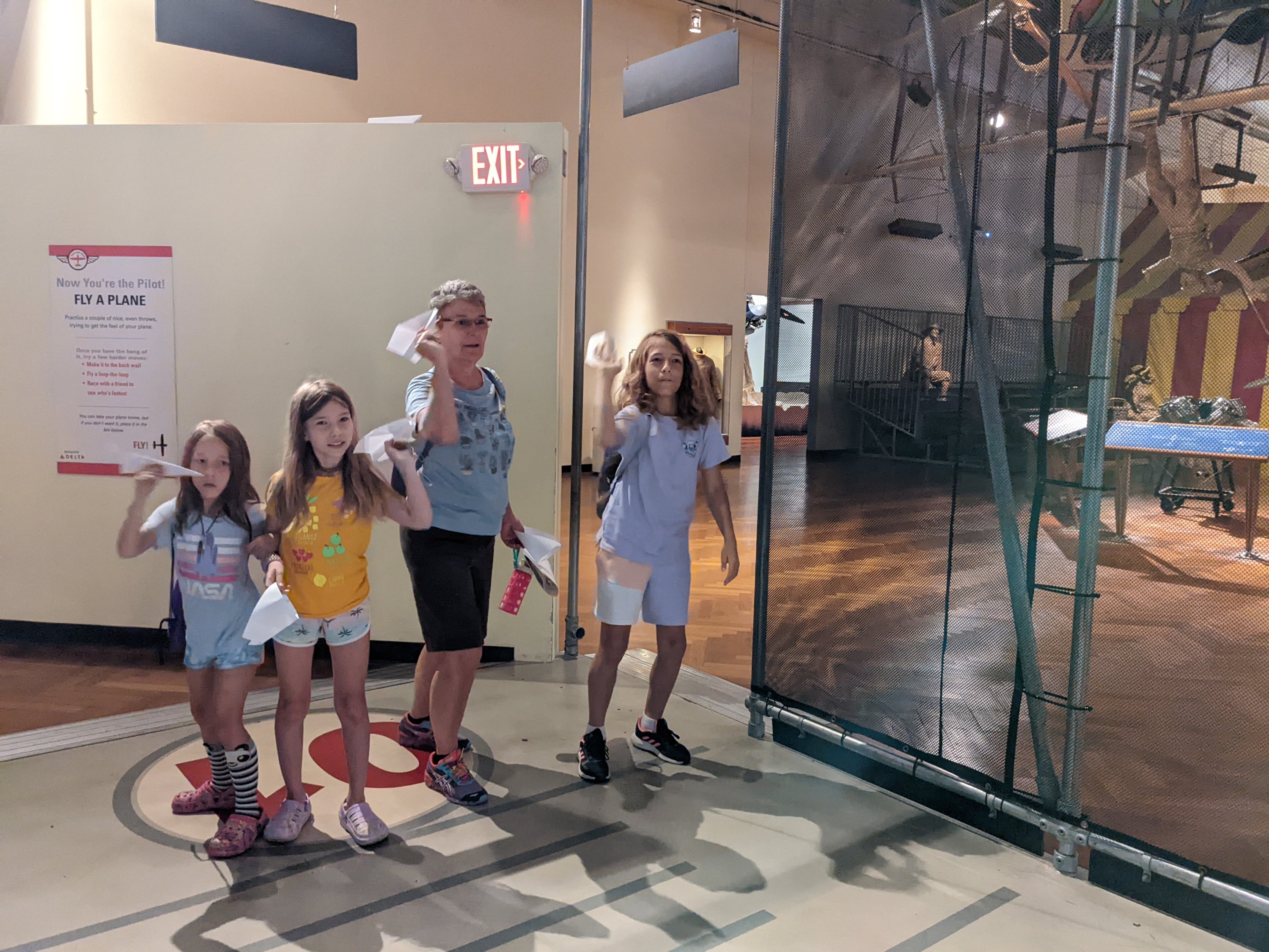 The kids liked the hands on stuff the best. Some of the hits for them were the racing simulator, paper airplane making, and the mathamaticas exhibit.