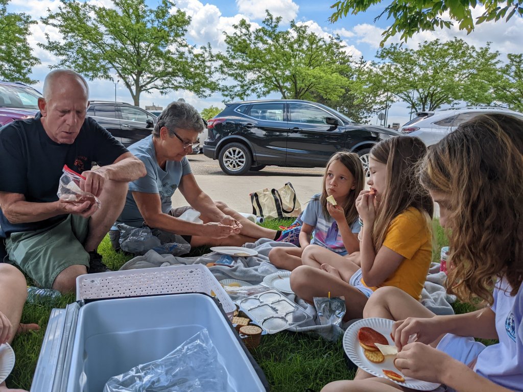 I didn’t want to spend an arm and a leg on lunch so we brought one and went back to the car to get it around noon. We had a picnic under a tree and ate cheese, crackers, sausage and fruit.