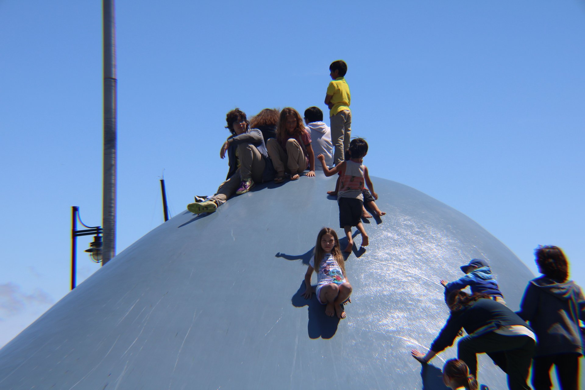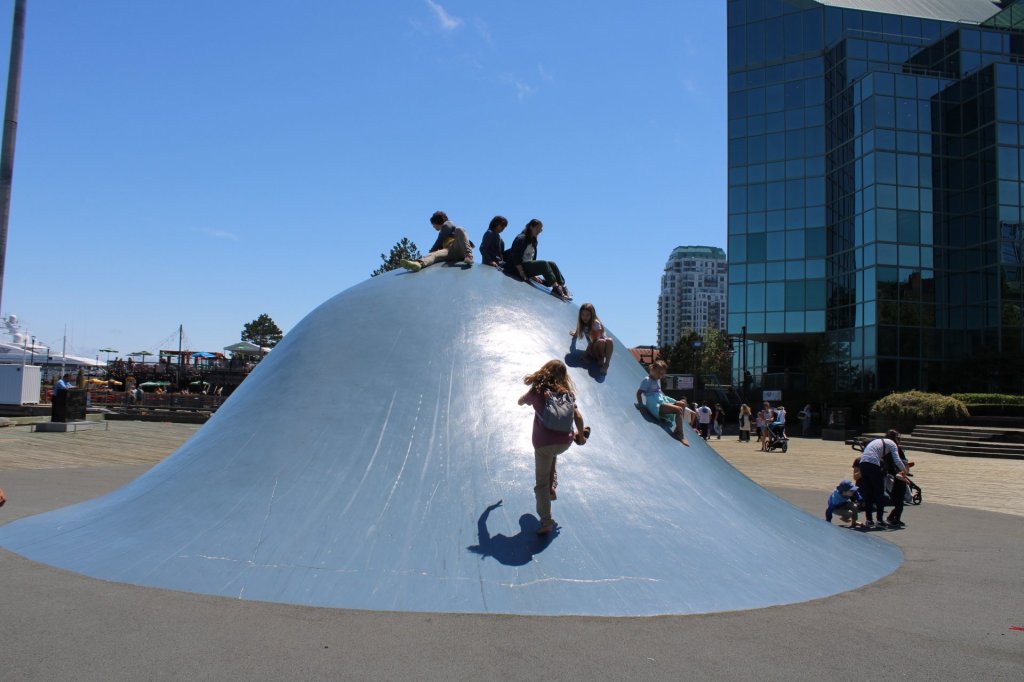 They had a sculpture that kids were climbing on so mine joined in too. There was a playground right next to it but it wasn’t half as interesting as this extremely dangerous wave sculpture. There were signs warning not to climb on it that we noticed later. Cal and I decided it was very poorly designed if they didn’t want people to climb on it.
