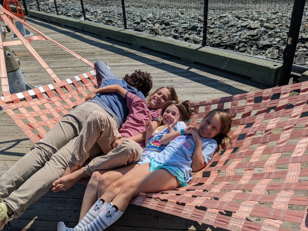 They had hammocks on the boardwalk and we were lucky enough to find one open. We played the telephone game and horsed around a bunch on the hammock then our parking meter was up so it was time to go.