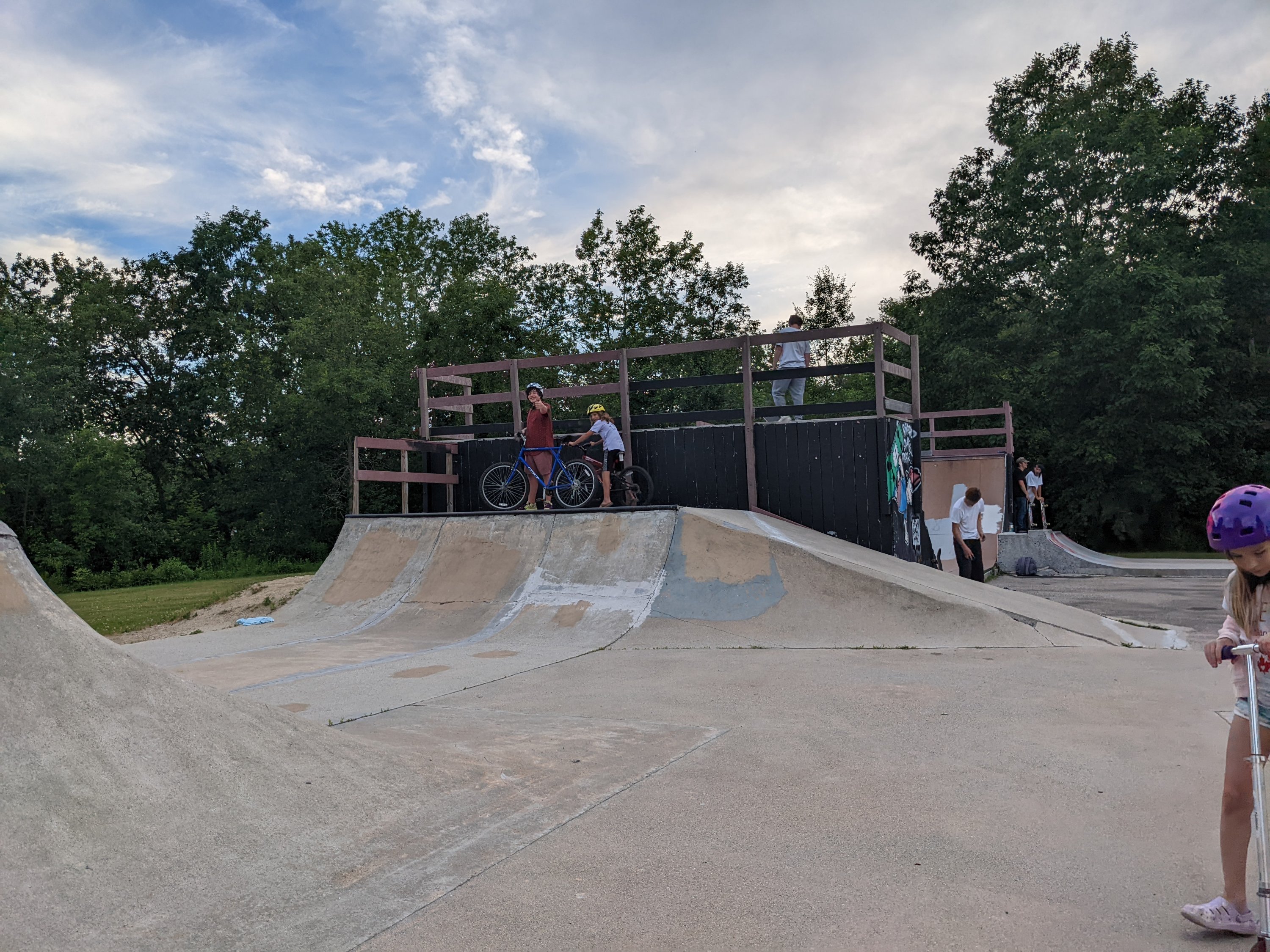 We walked/rode bikes to the park a couple of blocks away where there were playgrounds and a skate park.