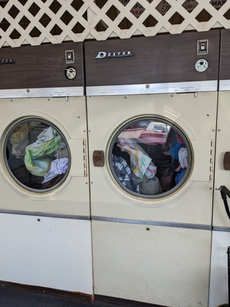 The machines in the laundromat were ancient. Worked great though! I did 6 loads of laundry because I washed some bedding too.