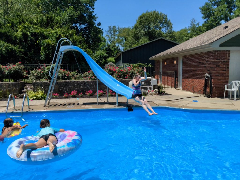 Melissa and I even went in and we both took a trip down the slide!
