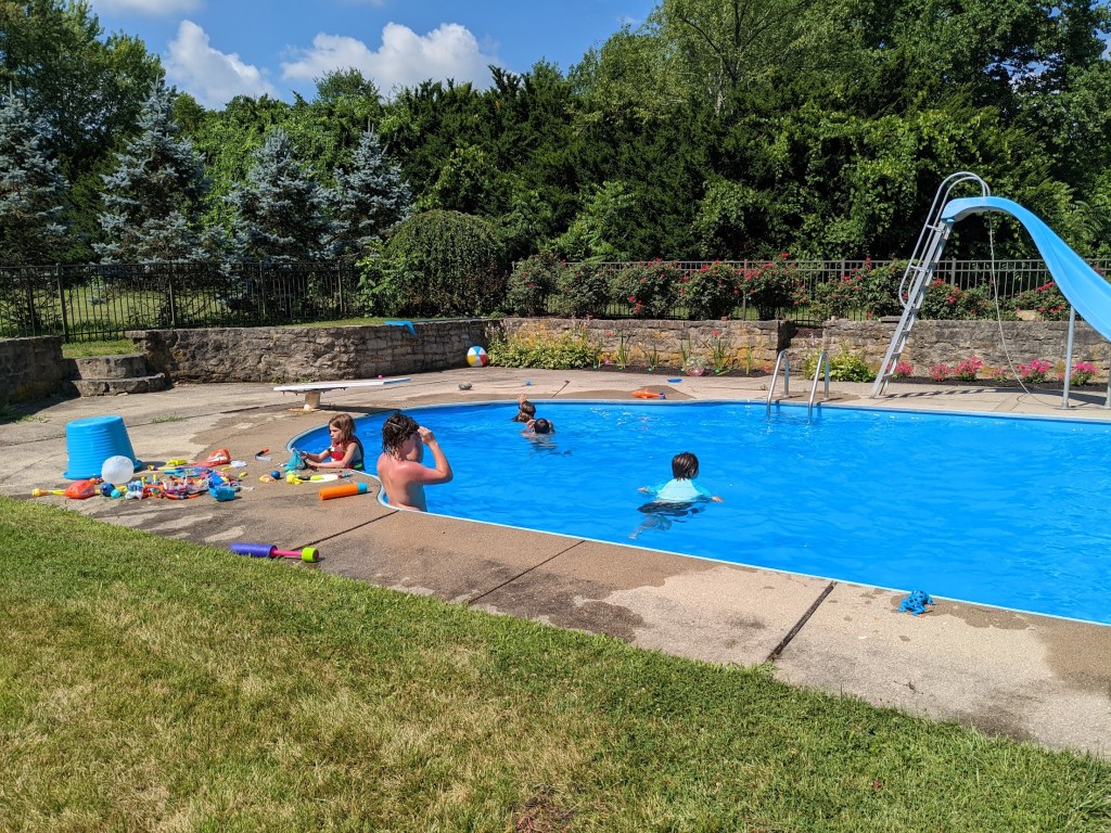 Lily and Esme spent the night last night and after pancakes, we went over to Melissa’s. We decided to spend a little more time at the pool before lunch. I had a visit from Nubby when we first got there.