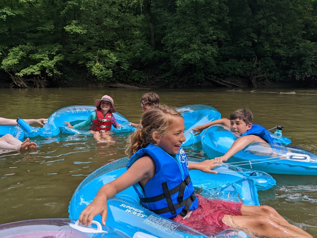 2:30pm Get in the river (actually it was more like 3:30–the floaties took longer to blow up than I thought)