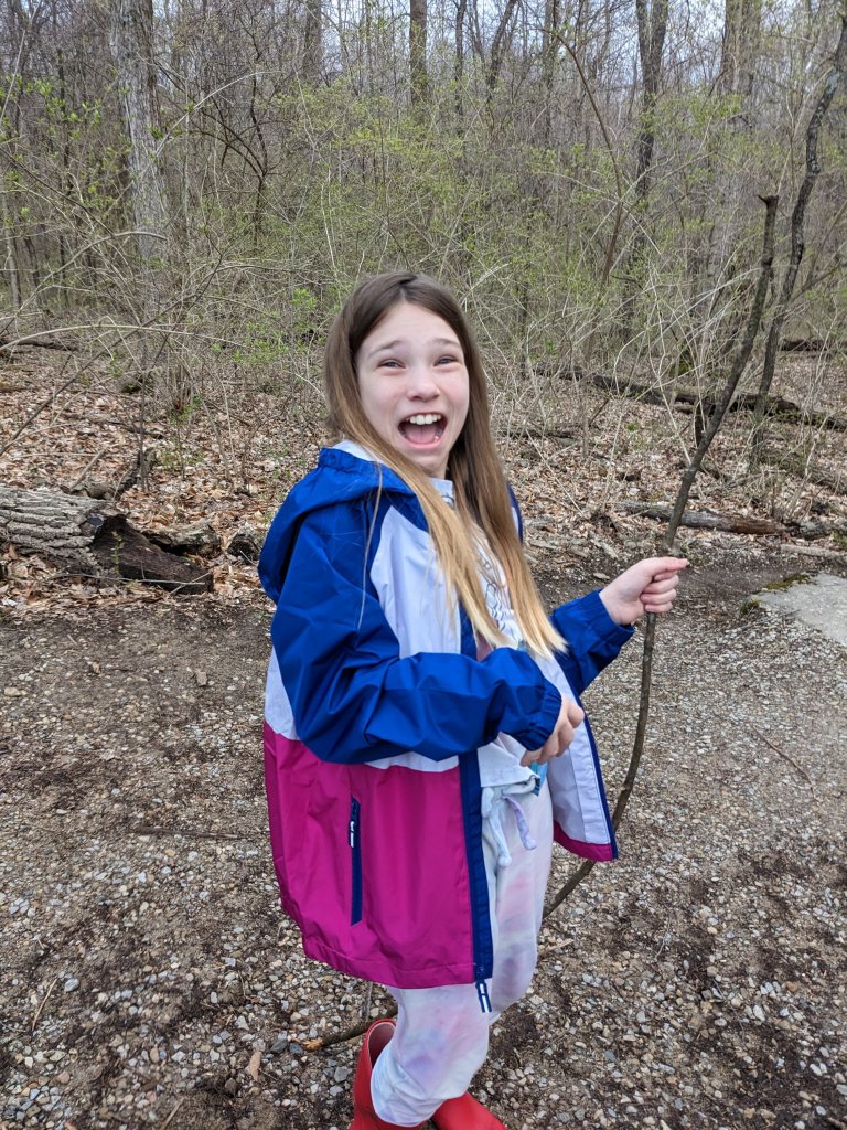 Melissa suggested a walk and a bunch of the kids decided to come along. We crossed a creek, visited the three sisters (three 500+yr old trees), then crossed back.