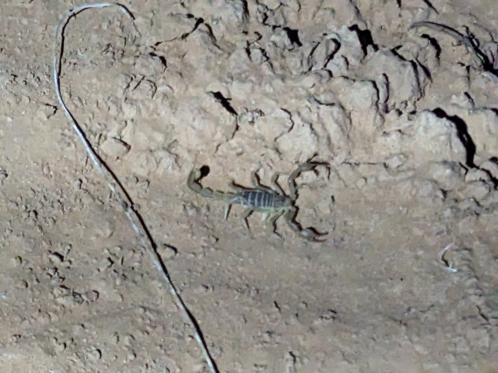 The scorpions in this area are called desert hairy scorpions which are not very dangerous though they can sting if they feel threatened. Their venom is not very powerful.