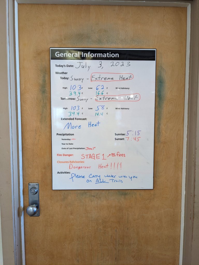 It was a scorching 100 degrees at this time and we were only outside for a short time (15 minutes?) but when I returned to the car my mouth was parched! 100 degrees is no joke! Next we went to the visitor center and did…guess what? Yup, the Junior Ranger Program! Everyone else went back to the car after that but I decided to walk the 200 or so feet to the archeological site. I loved the site but again in 15 minutes I regretted not having a water bottle with me and returned to the camper.