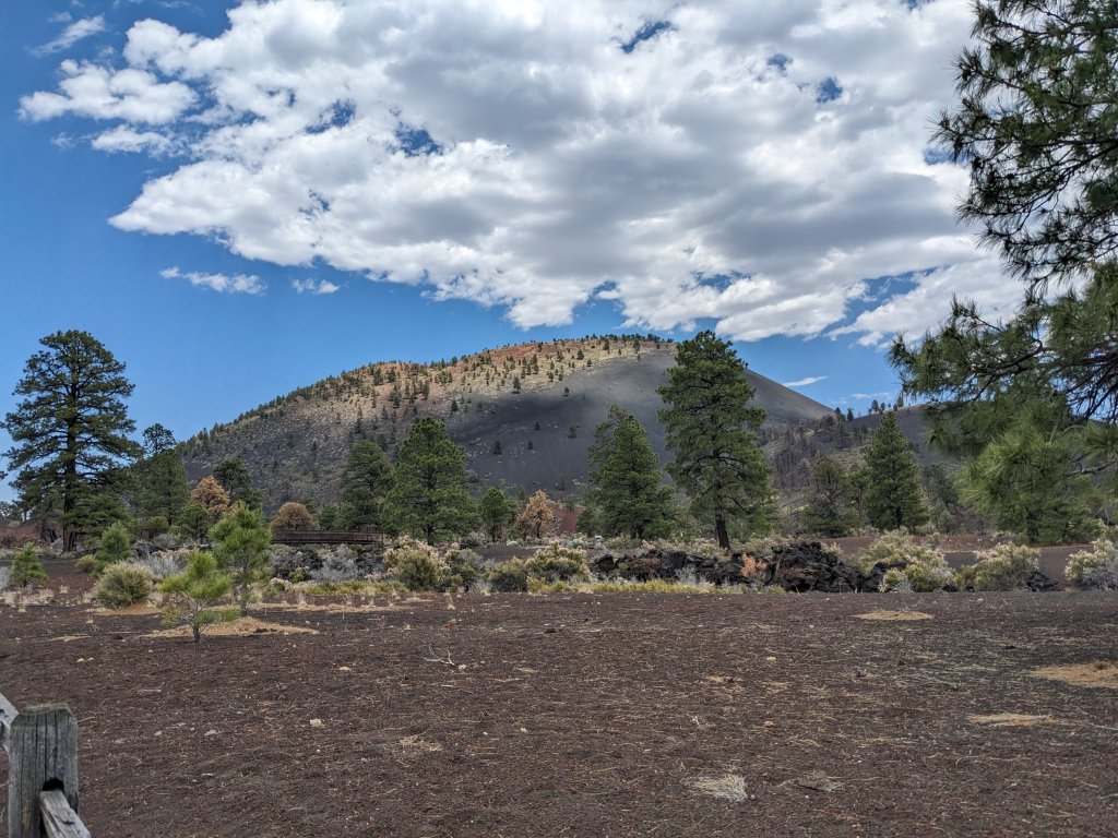 From there we went to Sunset Volcano Crater National Monument. It was only about 20 minutes from Wupatki but it was 10-15 degrees cooler there due to the change in biome from desert to forest. Everything here was covered in black cinder. This volcano last erupted 1000 years ago. The people who lived at Wupatki moved there not long after the volcanic eruption and were able to farm there due to the ash, which worked like mulch to hold moisture in the soil. Of course we did this Junior Ranger Program as well.