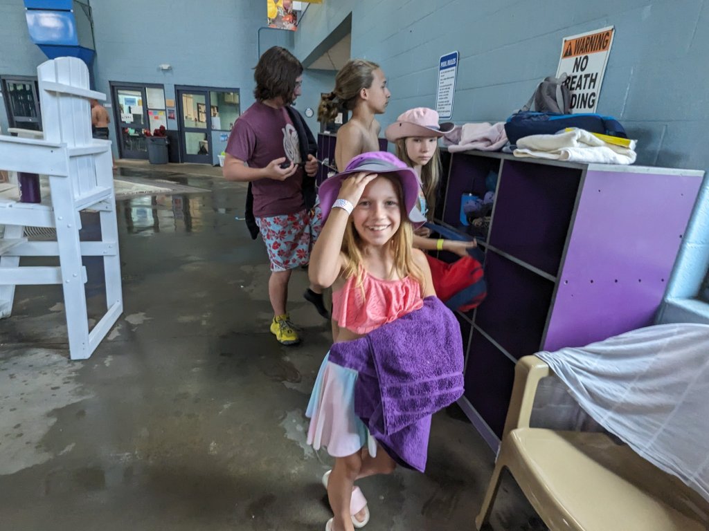The pool was at capacity so we had to wait a while before going in. We kept the fact that we might see the Yatzecks a secret and the kids were very surprised to see them.