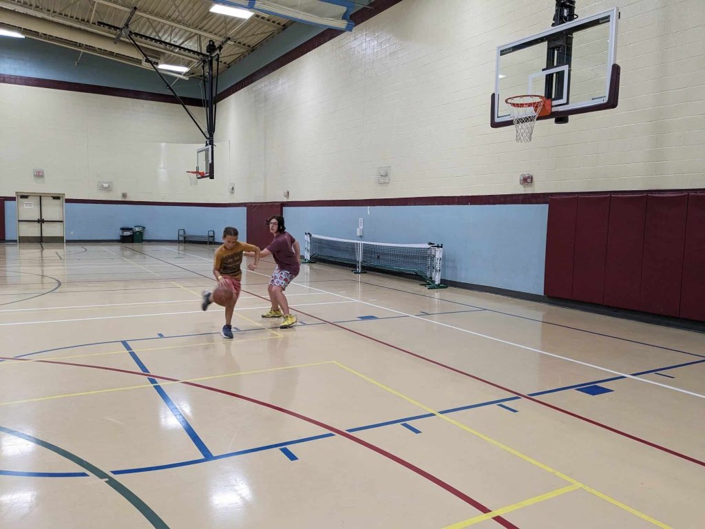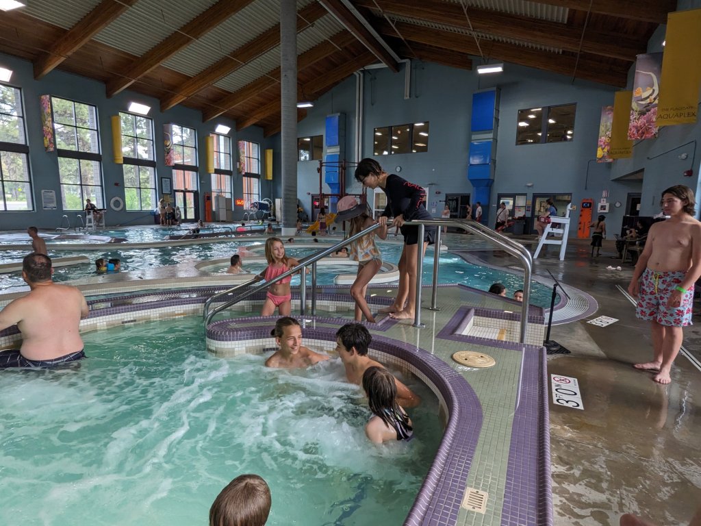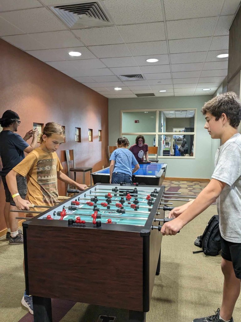 After some pool time, some of the kids went to play basketball and air hockey. Eventually we were all out of the pool and showered. Both families needed a Walmart run so the older kids kept an eye on the younger ones at the aquatic center (playing basketball, foosball, and air hockey) while the parents did a quick grocery trip.