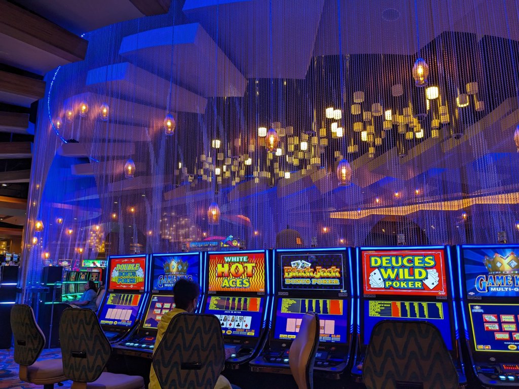 Nole and I went inside to check the place out. We each spent $5 on quarter slots. I won my $5 back but spent it again. Gambling is not really our thing but it was fun to try it.