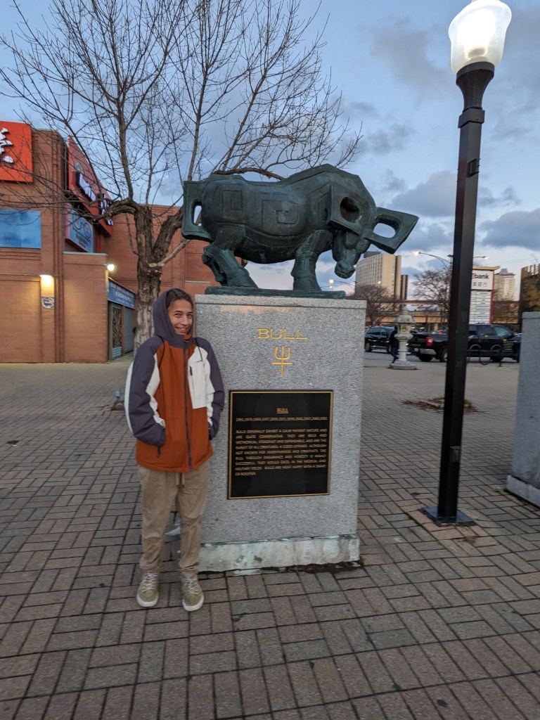 Next we walked to Chinatown Square Plaza and looked at the zodiac statues. We each took a picture with our Chinese zodiac.