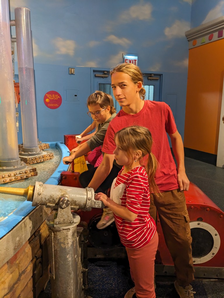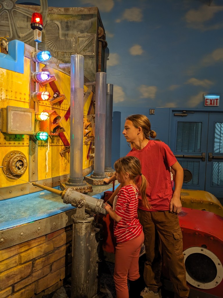 Then we decided to try the Idea Factory. This area used a timed entry system which I did not realize but there was enough space for us to go in. This area has lots of hands on stuff to do including ball pit balls, water, conveyors, water guns, etc. It was a fun way to end our visit at the museum.