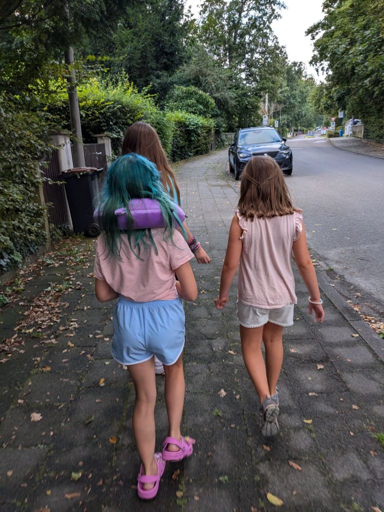 We got back just in time to see Ruby and Jasper before they left for day camp. Ruby was so excited to see ya that she woke up at 5am! We stopped at a bakery and got our first baguette of the trip and some pretzels when we walked them to their bus stop.