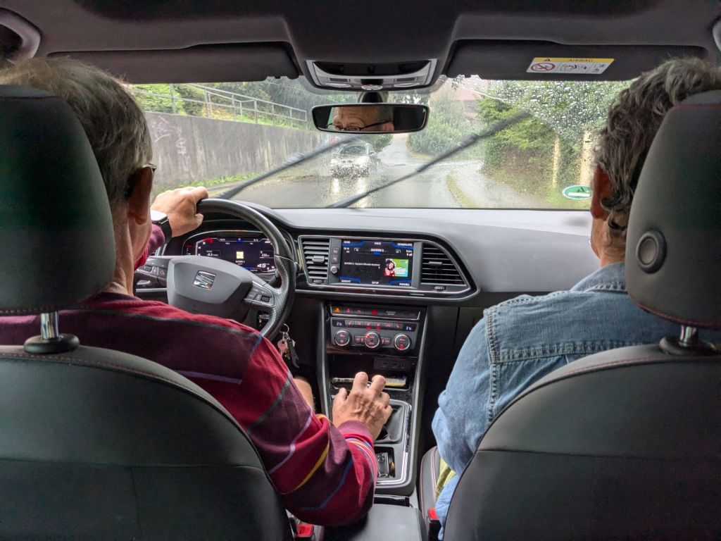 It was a rainy day today but we put on our rain jackets and went into Passau to do some dirndl shopping. I have been riding in the back with the girls during this part of our trip.