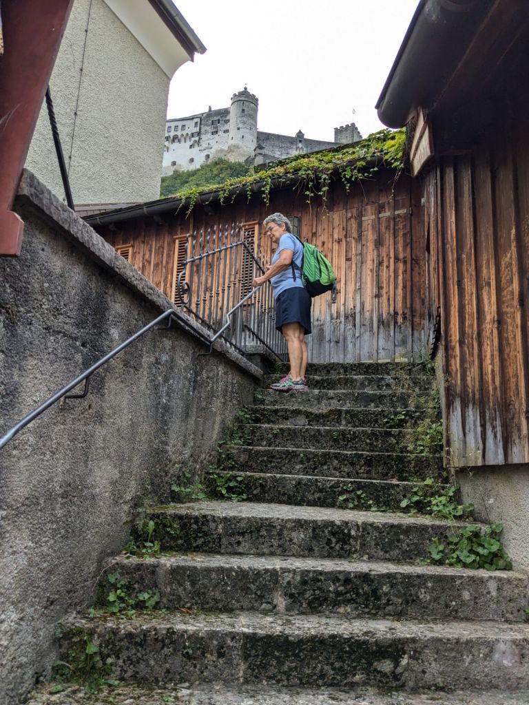 We walked up to Nonnberg Abbey. We had to climb about 115 stone steps to get up here. This is where Maria (in real life) was a novice, training to be a nun. Maria and the Captain were married here in real life. In the movie, they just used the entrance gate for several scenes.