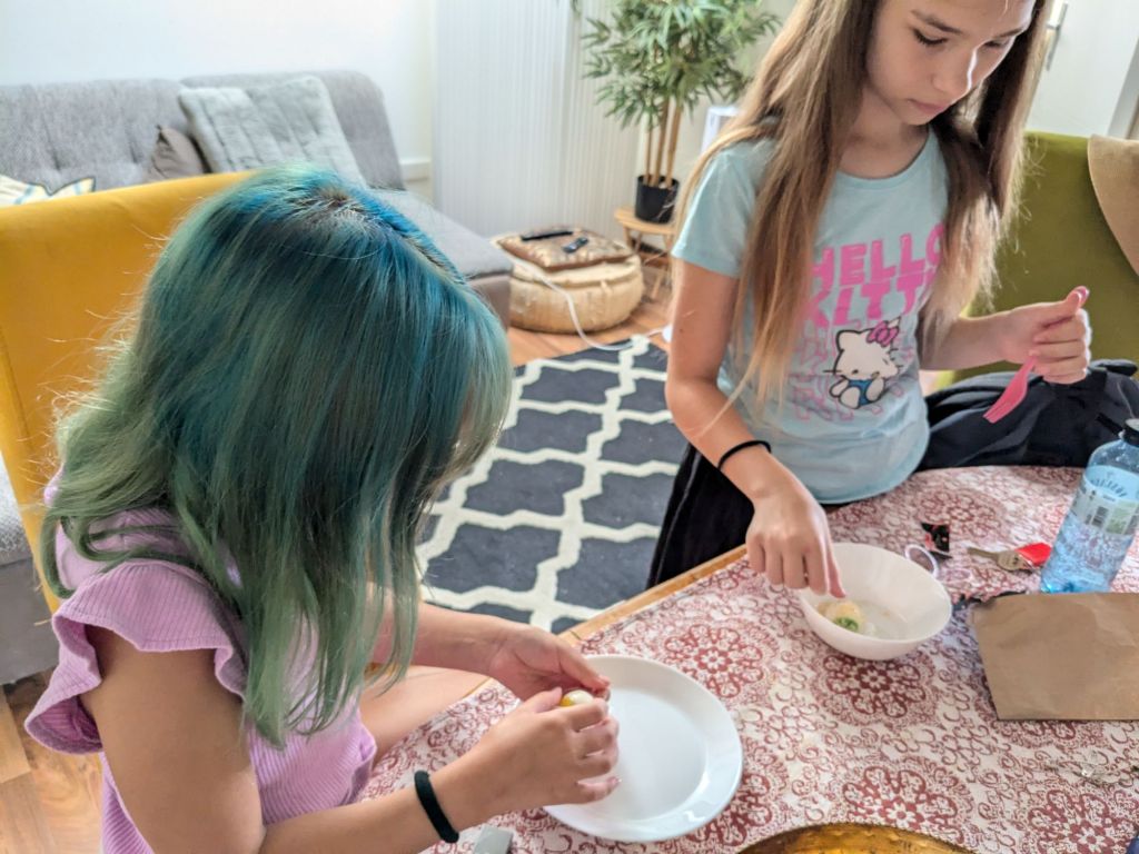 The girls were getting hungry so we grabbed a pretzel and then made our way back to the apartment for lunch. The girls each spent about 4€ on candy today and they ate these eyeball candies that are wet gummies with a sour liquid inside. Sounded kind of gross to me but they enjoyed them.