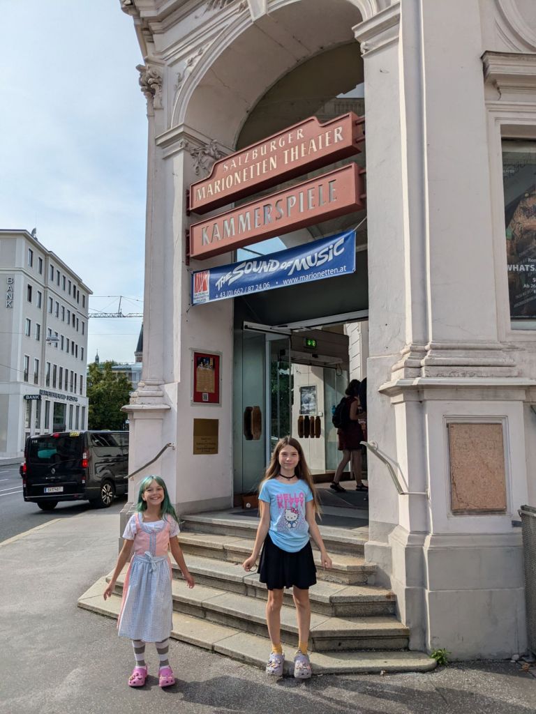 We went to three resale shops and I found another dirndl for myself and Nova at the third stop. My dirndl was 13€ and Nova’s was 9€. She wore hers when we went to our main attraction today, seeing the Sound of Music at the Salzburg Marionette Theater. Photos during the show are not allowed so I will post some I stole from the internet.