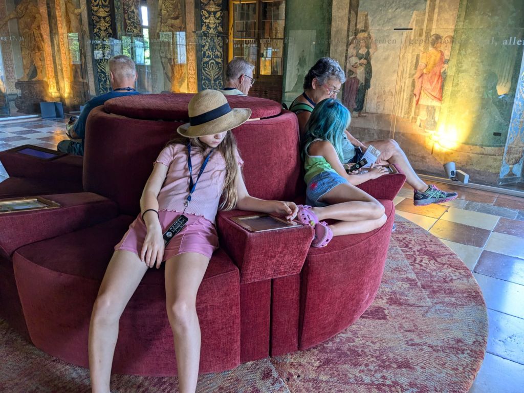We waited for our turn to see the fountains. We each got an audio guide in English. They had special ones for the kids. I didn’t get a chance to listen to theirs but I’m assuming it was just a simpler version of what the adults heard.