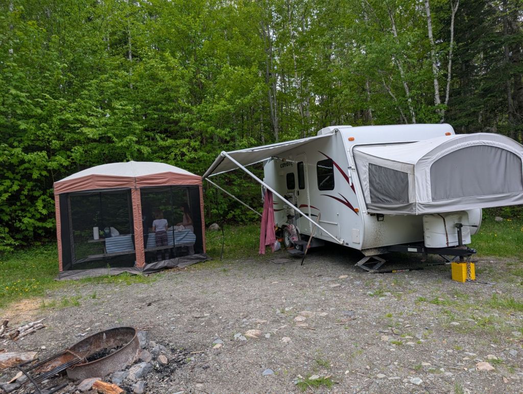 We celebrated, then made dinner and ate s’mores. Some of the kids walked to the bog. Esme went twice today and didn’t see a moose, Nova chose not to go saying she has no desire to see a moose.